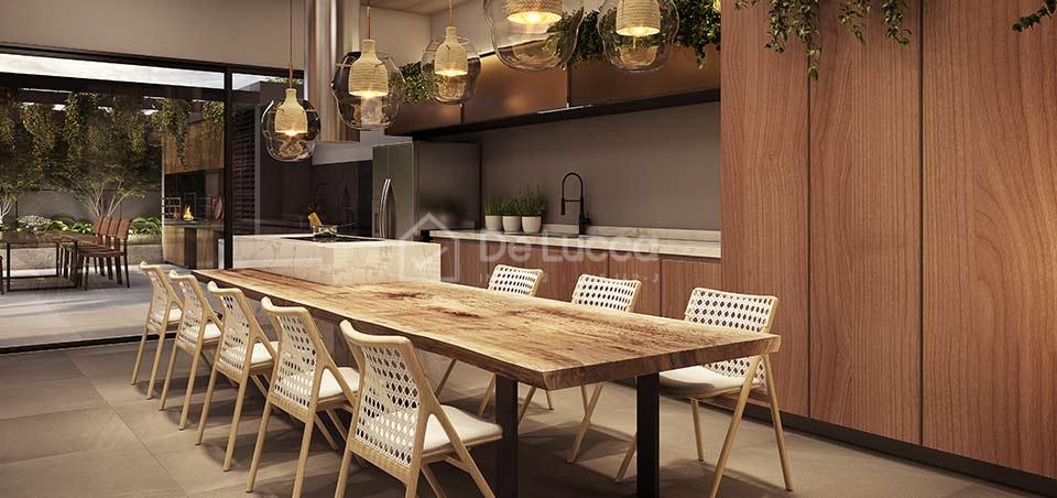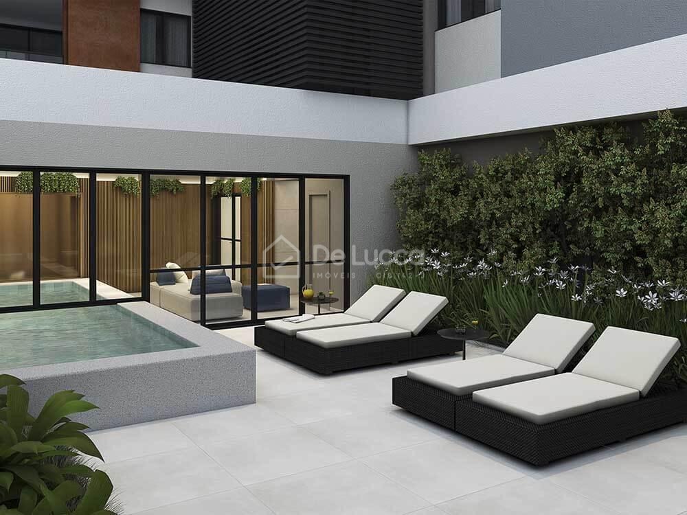 - 12 unidades tipo de 182m² com 3 suítes e 3 vagas de garagens determinadas com pé direito de 5,50 no living e no terraço.