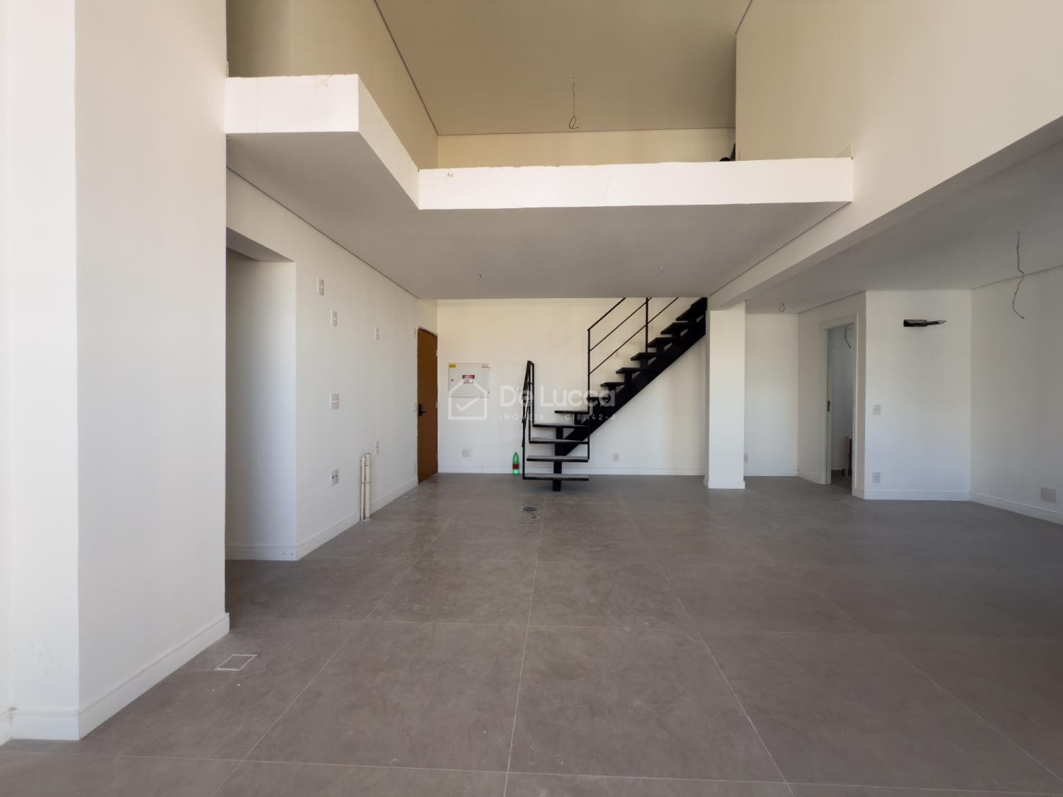 No mezanino, a suíte espaçosa proporciona flexibilidade: pode ser adaptada como escritório, closet ou estúdio pessoal, de acordo com seu estilo de vida.