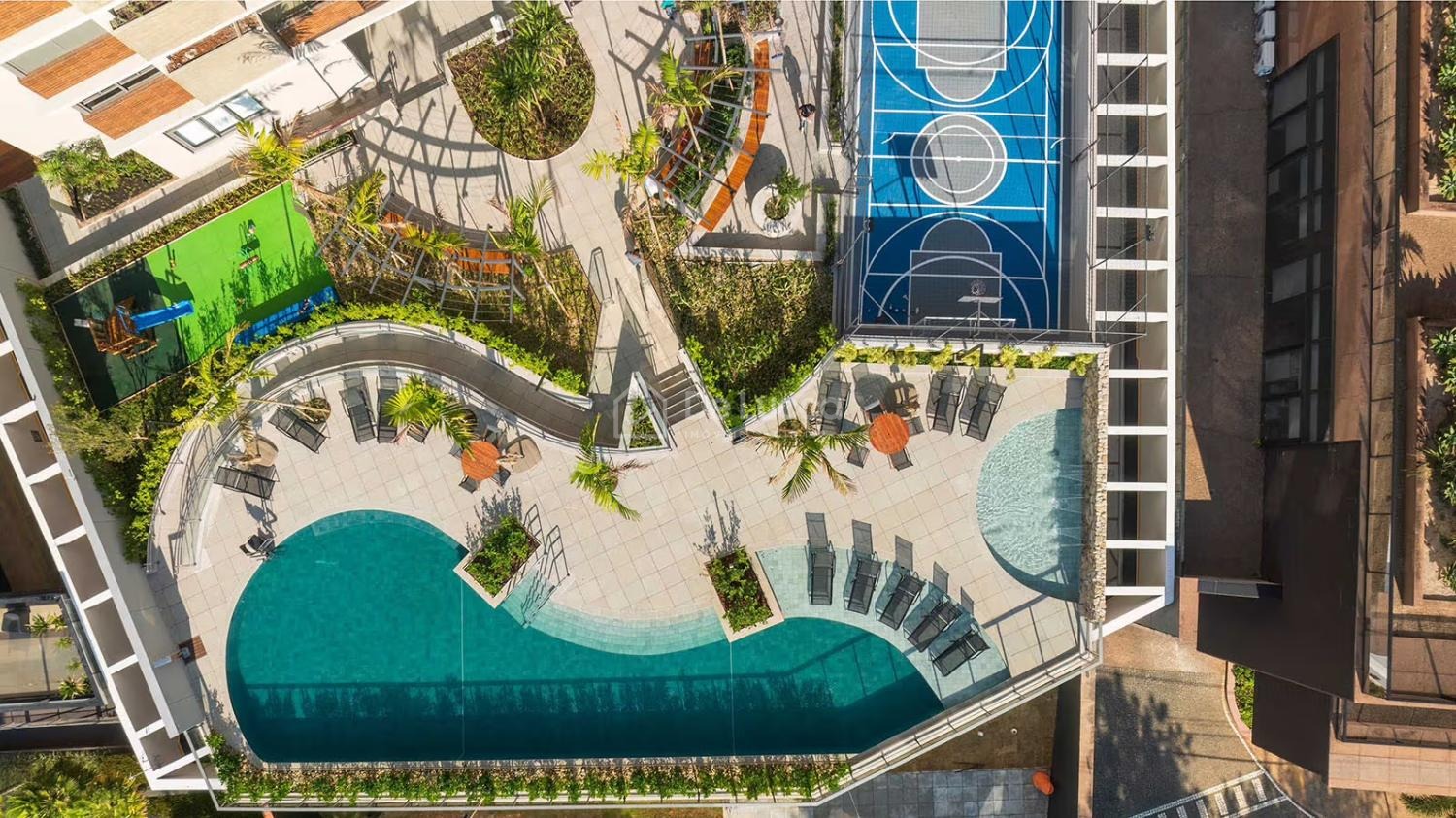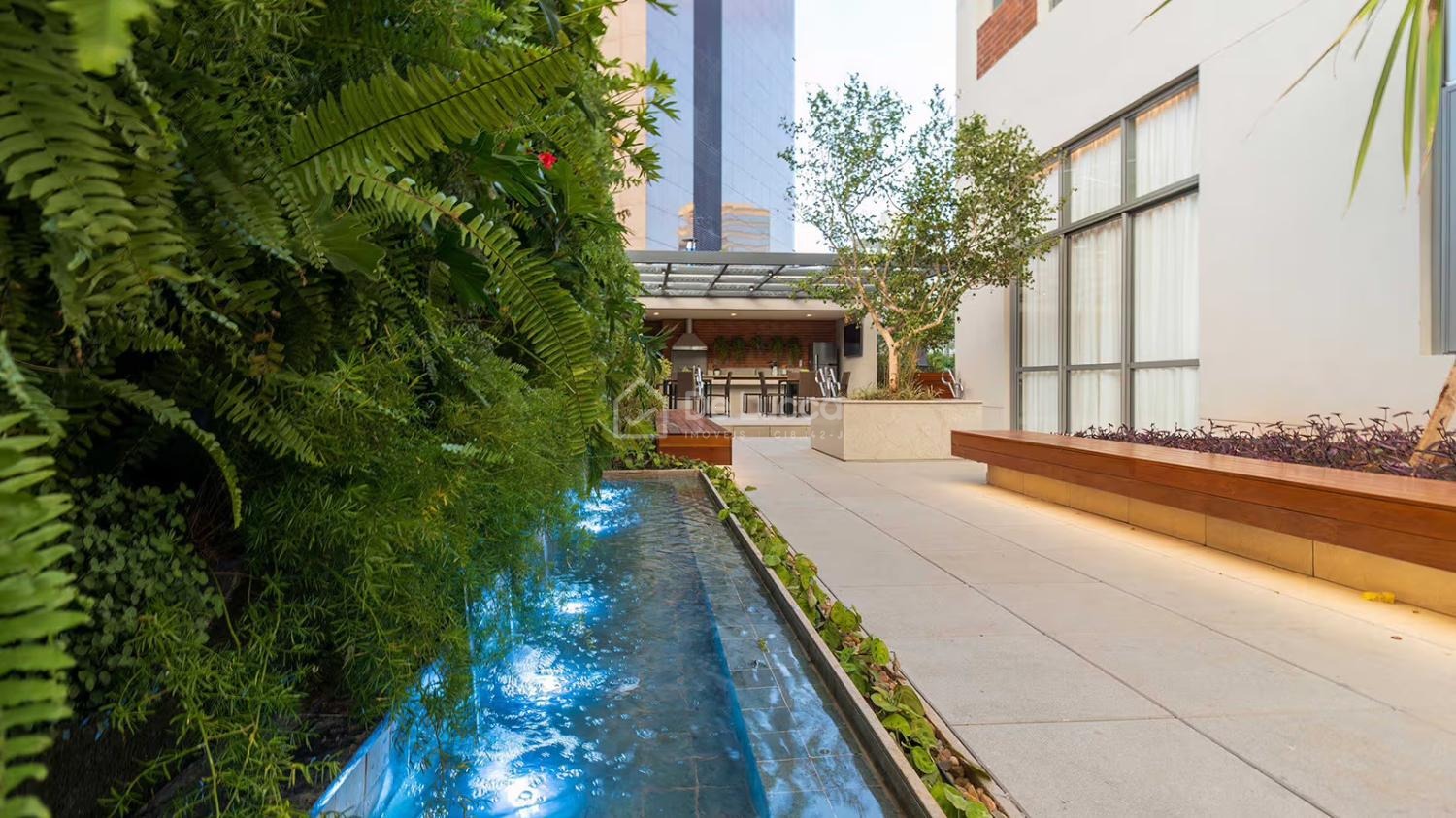 Alguns dos diferenciais entregues são 05 elevadores, delivery space, sala de reunião, fire place, magnifica praça central com espelho d’agua e tomada para recarga de carro elétrico e uma completíssima área de lazer entregue equipada e decorada, numa área de 2.616,50 m² de terrreno.