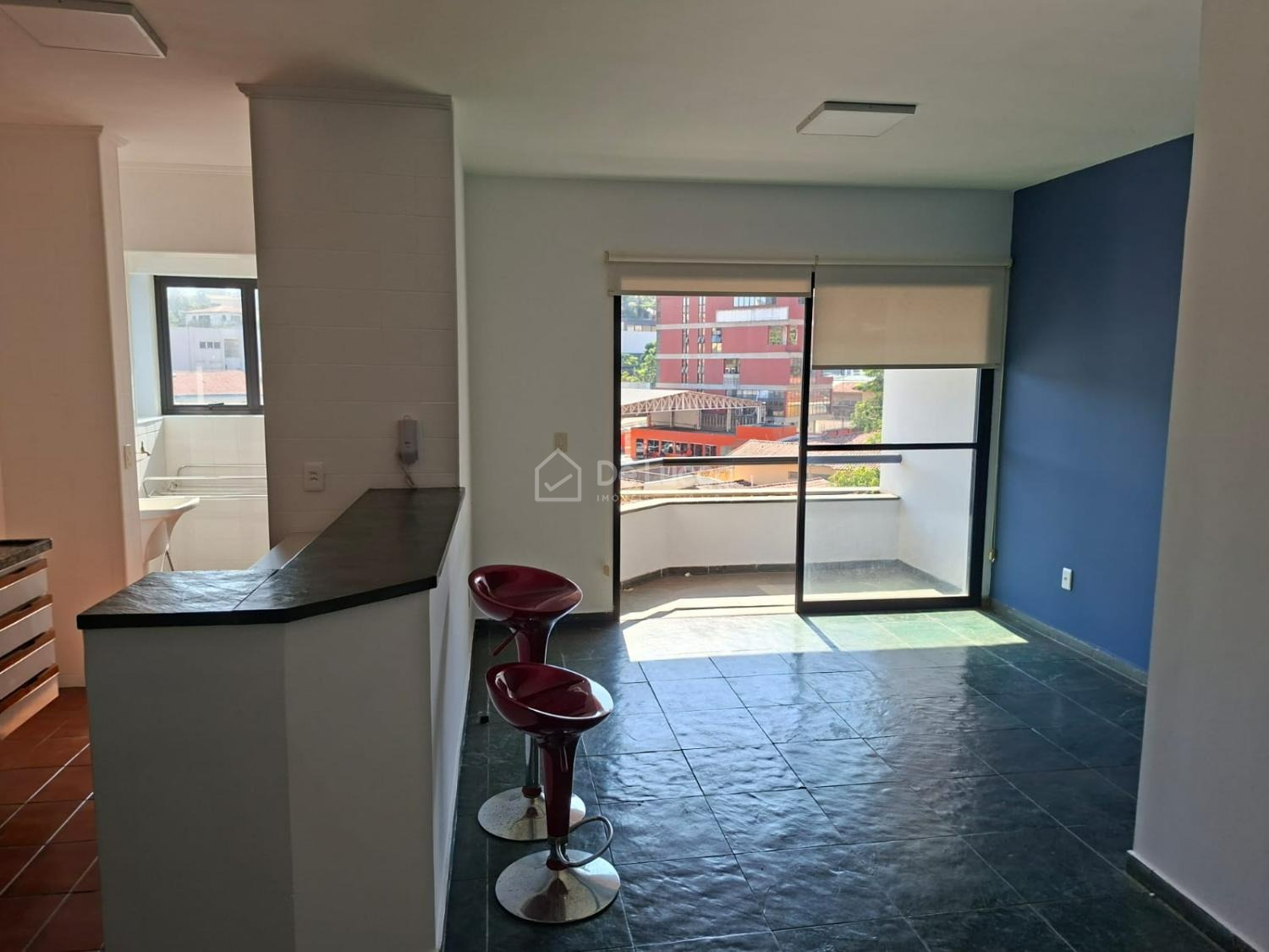 1 suíte com armário, closet que foi adaptado para escritório, living amplo para 2 ambientes, varanda, cozinha americana, lavanderia com banheiro e 1 vaga de garagem coberta.