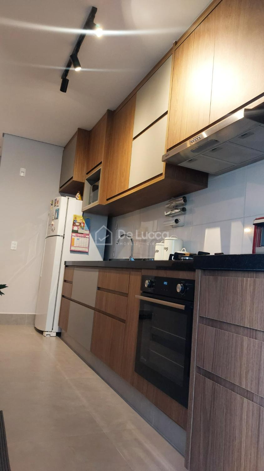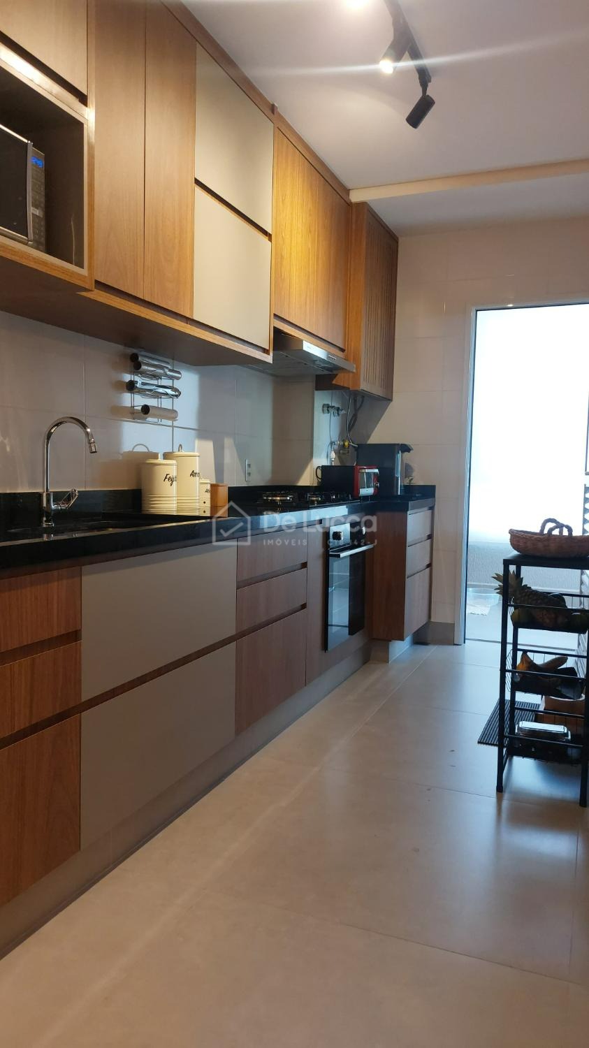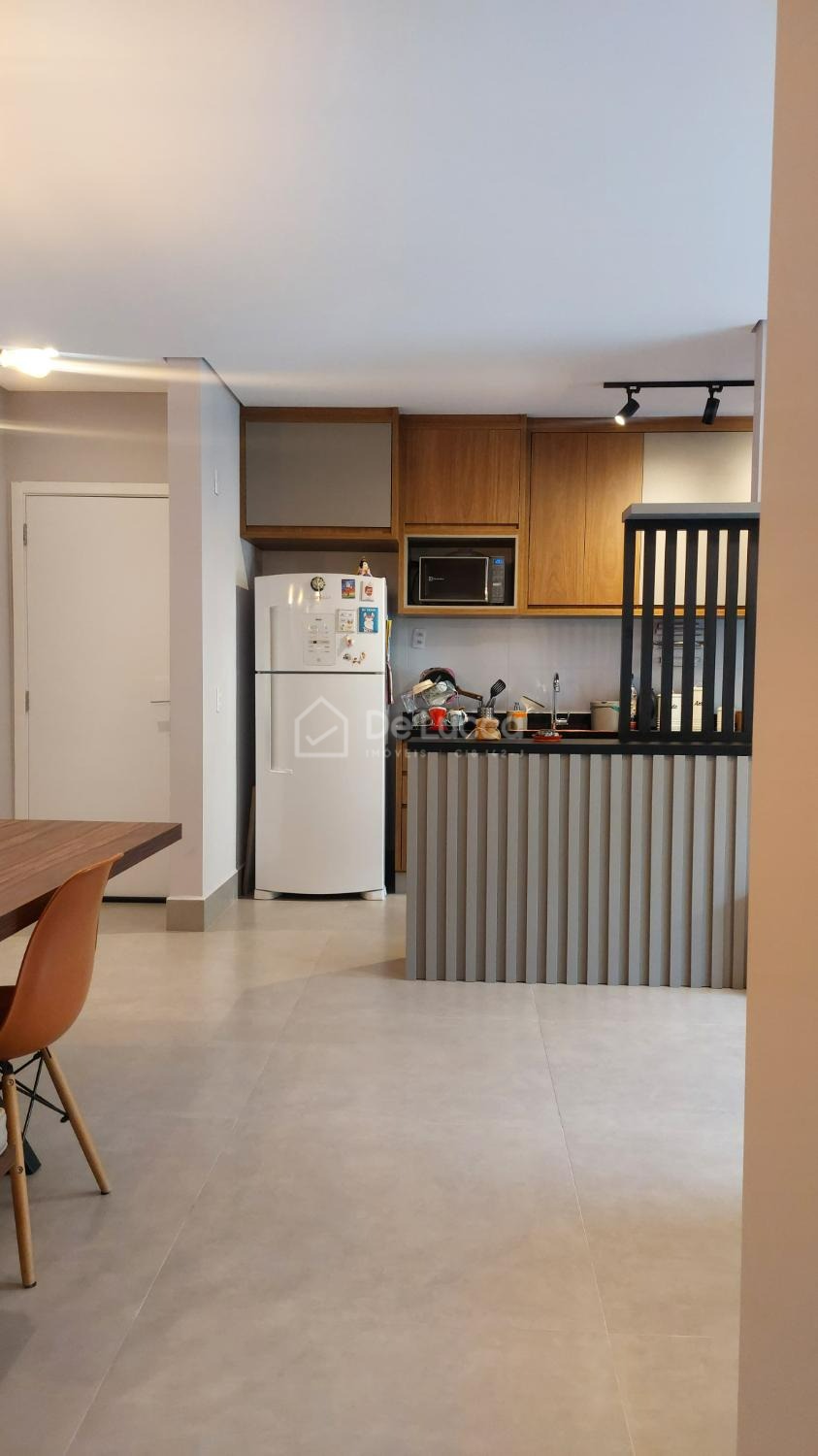 A cozinha americana planejada traz praticidade e elegância, e o imóvel conta ainda com 2 vagas de garagem cobertas.