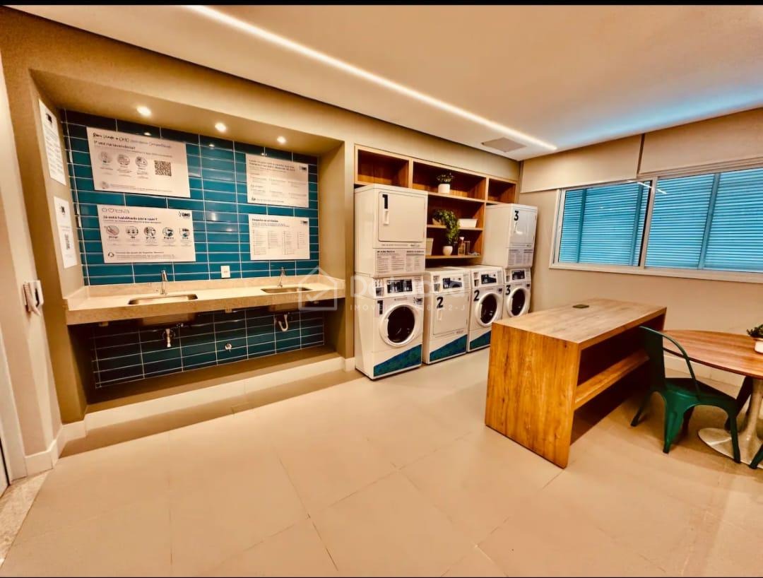 O imóvel conta com 1 dormitório, sala aconchegante, cozinha funcional e 1 vaga de garagem. A unidade está mobiliada e equipada, possuindo armários planejados na cozinha, banheiro, sala e quarto, além de geladeira, máquina lava e seca e cama de casal com baú, oferecendo praticidade para o dia a dia e excelente aproveitamento dos espaços. O apartamento também dispõe de armário privativo na garagem.