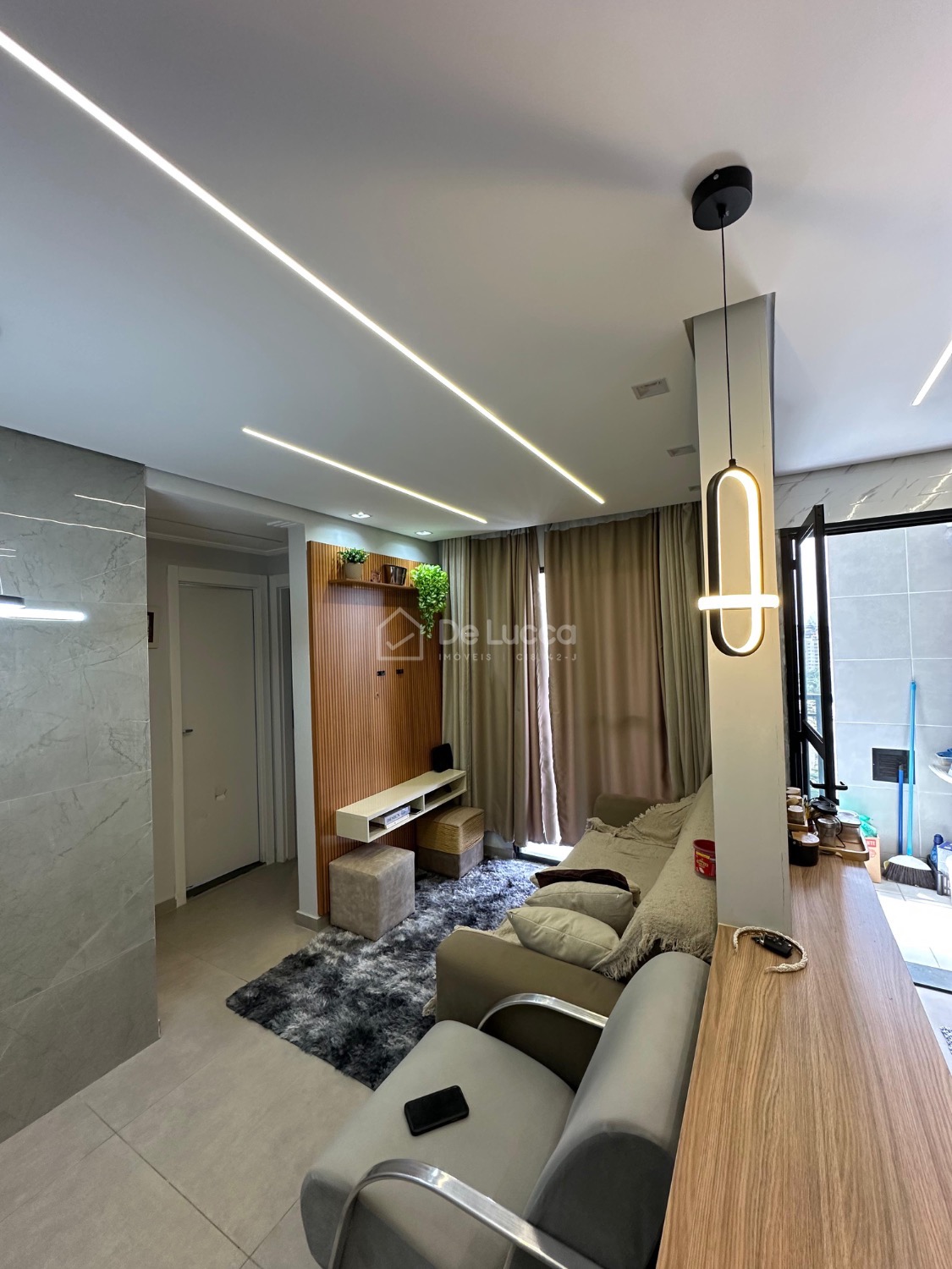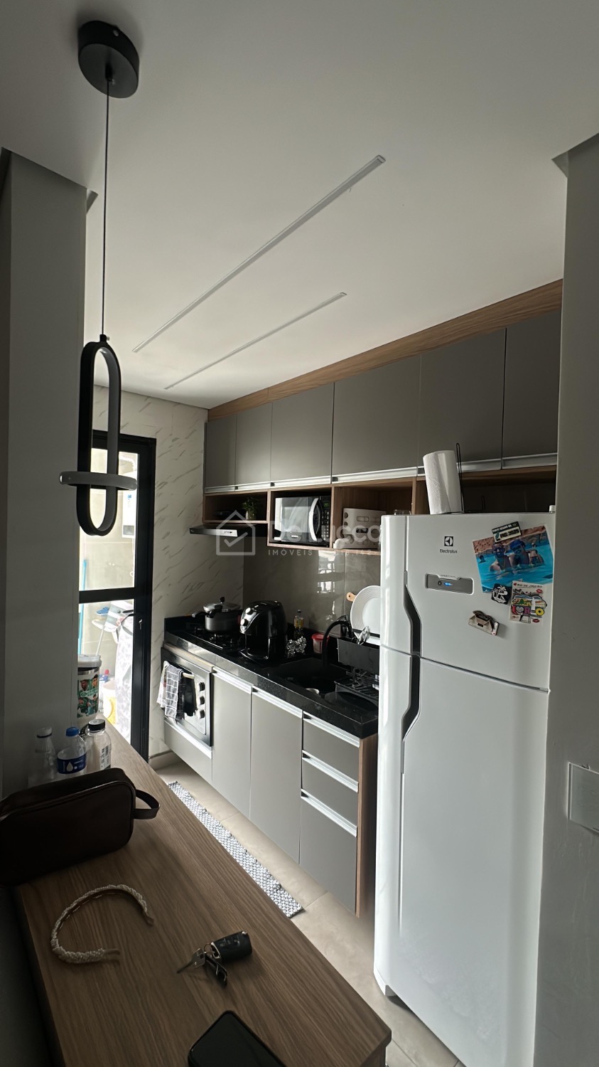 O imóvel conta com 2 dormitórios e sala integrada à cozinha, proporcionando um ambiente funcional e bem distribuído. A cozinha é planejada e equipada com cooktop e forno, oferecendo mais praticidade no dia a dia. A sala possui boa iluminação natural e acesso à sacada, contribuindo para melhor ventilação e sensação de amplitude.