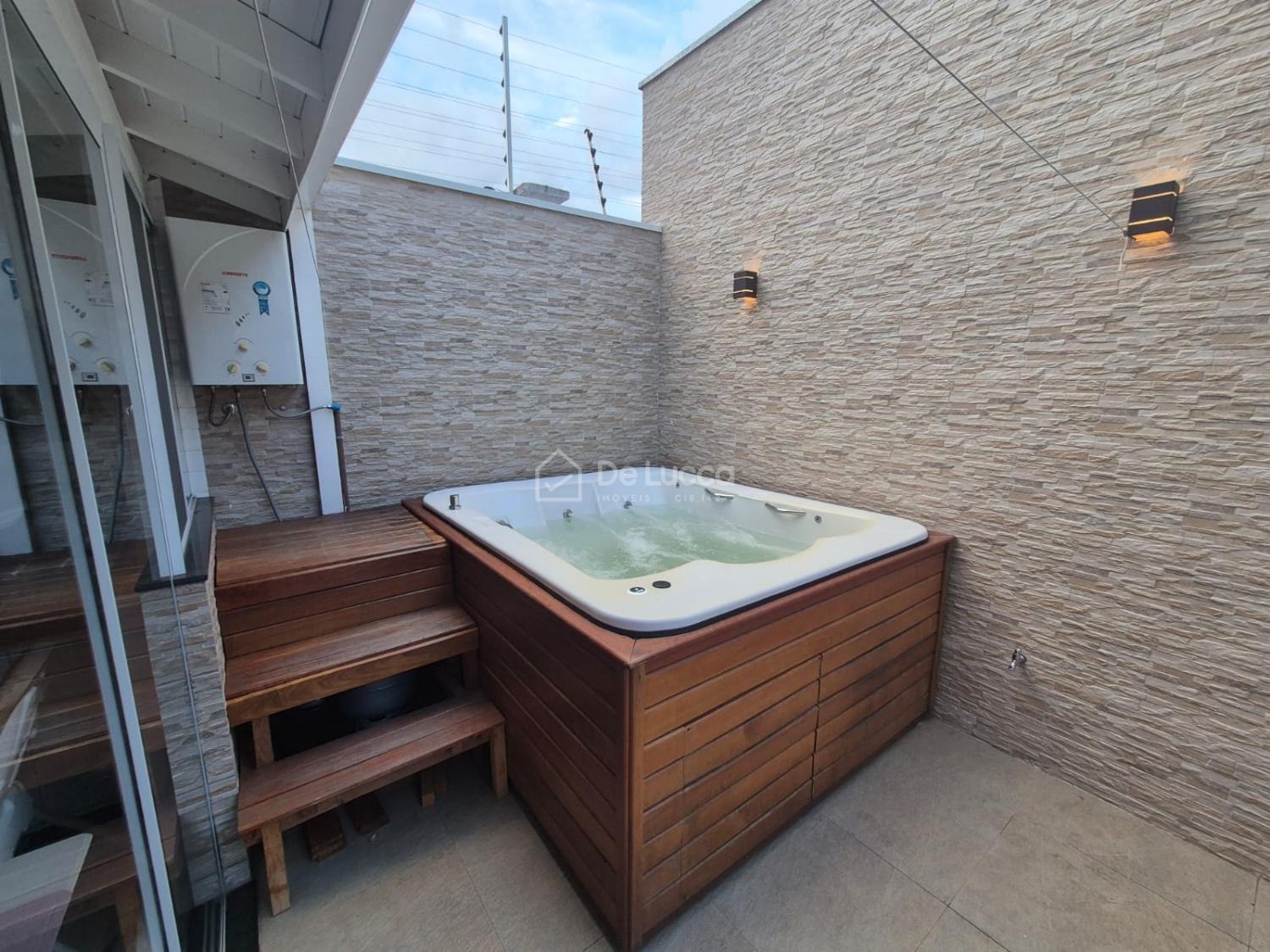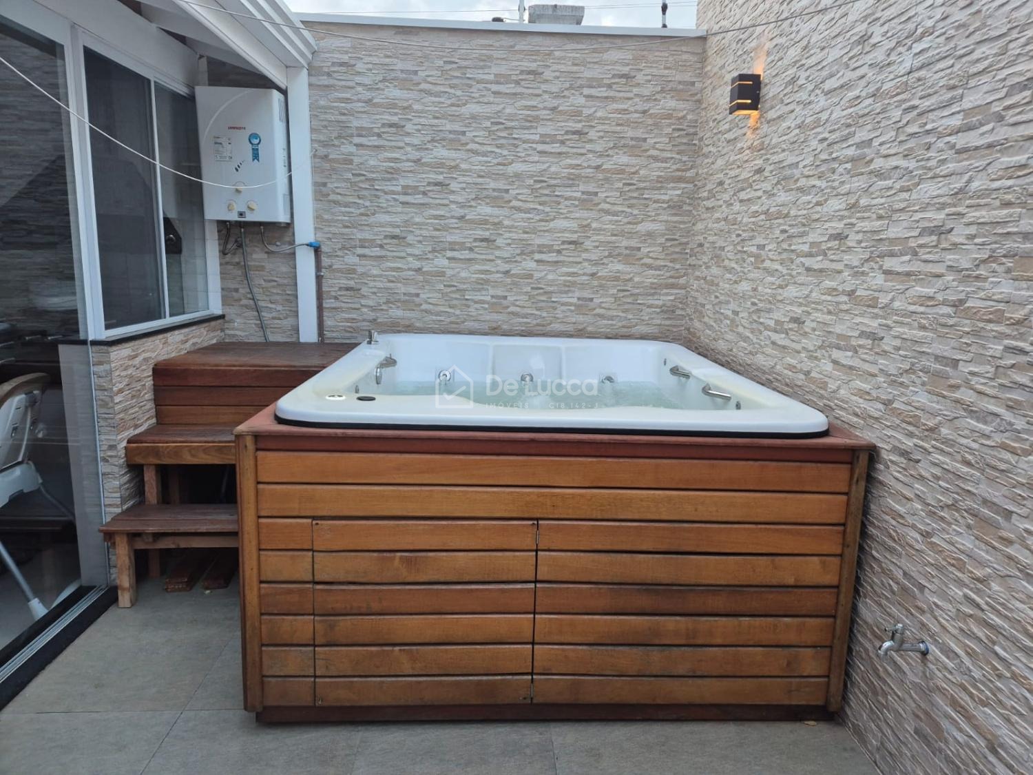 No quintal, um agradável spa com hidromassagem aquecida a gás proporciona relaxamento em todas as estações do ano. A casa ainda possui 2 banheiros completos, 1 lavabo, escritório funcional, lavanderia espaçosa e 2 vagas de garagem com portão eletrônico.