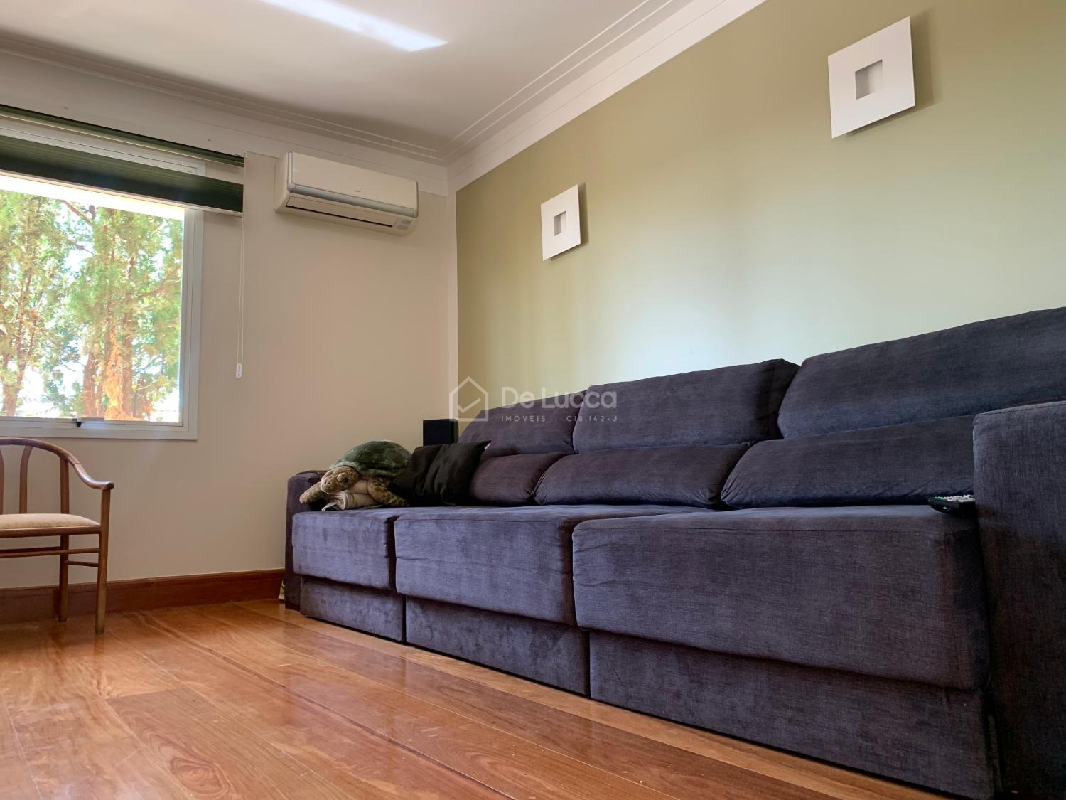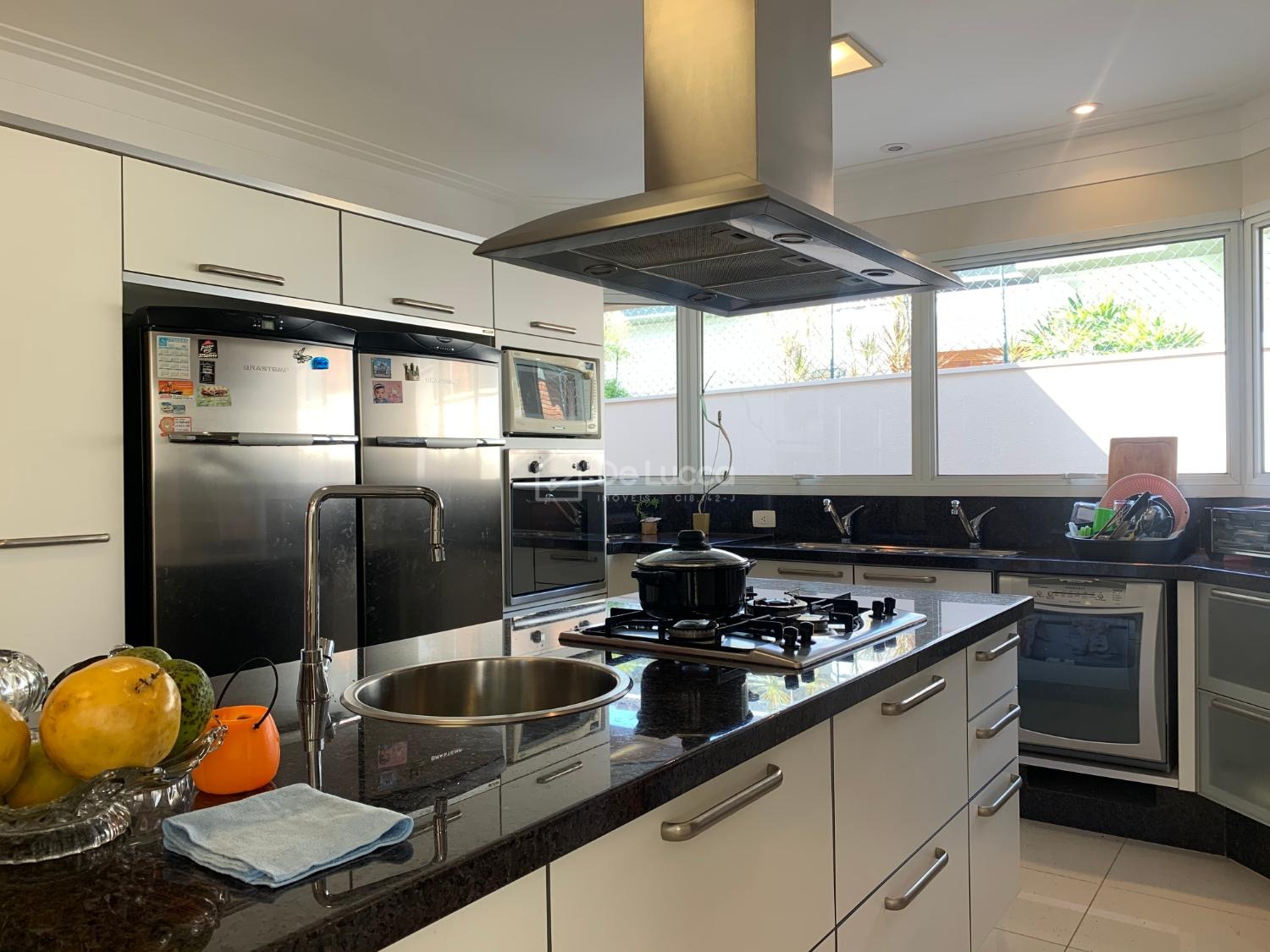 O imóvel conta com 4 suítes amplas, todas com ar-condicionado, além de ambientes bem distribuídos, incluindo sala de estar, sala de jantar, sala de TV e escritório, ideal para home office. Possui ainda banheiro social, cozinha planejada moderna com despensa e dependência completa de empregada.