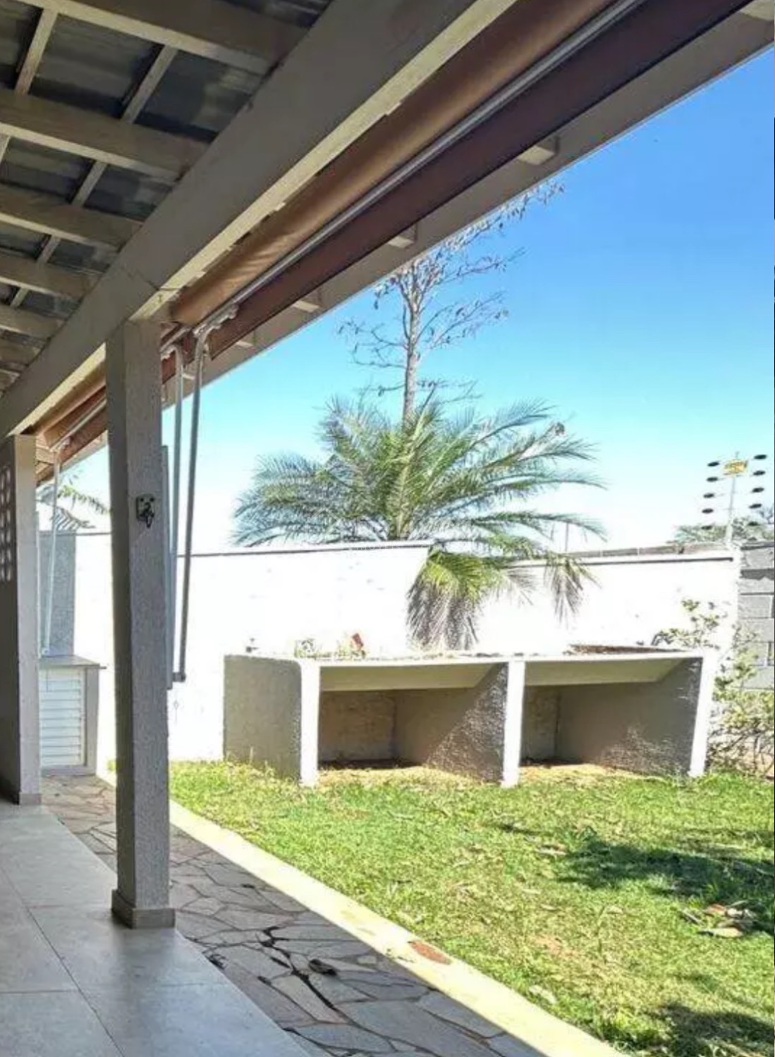 Quintal com horta e pé de limão produzindo.
