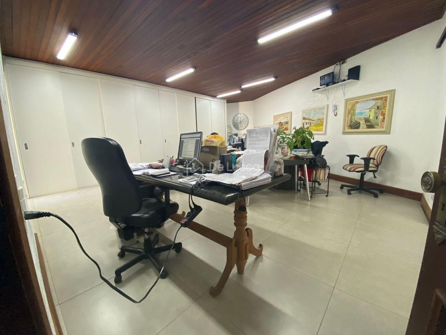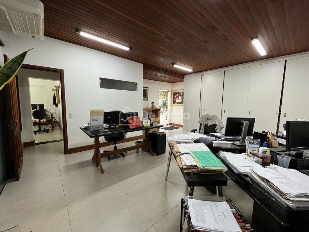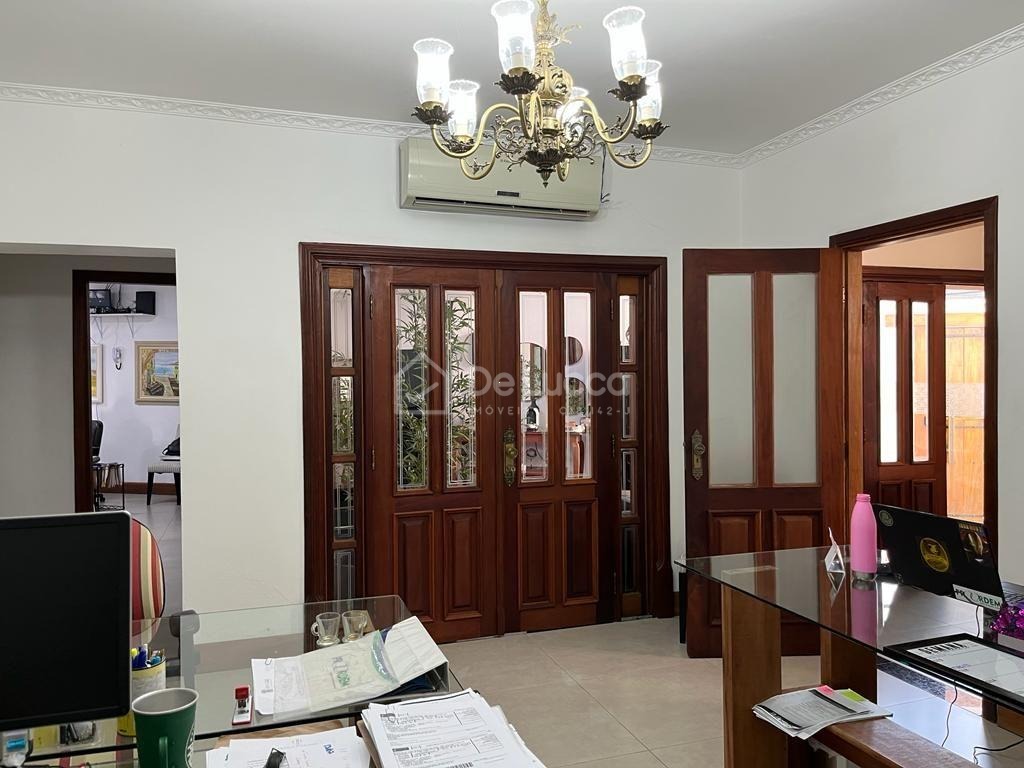 No pavimento térreo, o imóvel dispõe de um amplo living com portas em madeira que conferem sofisticação e excelente iluminação natural. São três salas generosas, perfeitas para recepção, áreas administrativas ou salas de reunião. O espaço conta ainda com duas suítes e dois quartos adicionais, atendidos por um banheiro social, além de um lavabo que garante praticidade no dia a dia. A cozinha funcional é integrada à lavanderia espaçosa, que inclui banheiro de serviço para apoio.