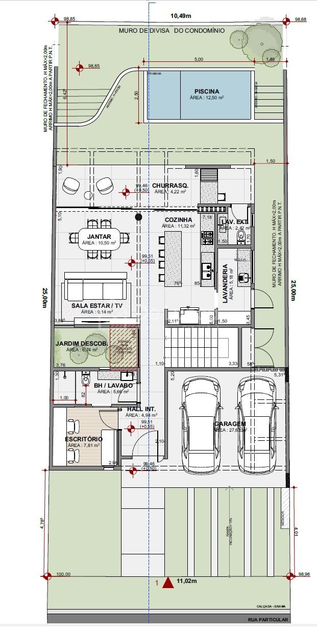 A casa contará com quatro suítes completas, sendo uma suíte master e uma suíte no térreo, que pode ser reversível para escritório ou home office, ideal para quem precisa de um ambiente mais reservado. O living é amplo, com sala de jantar integrada à sala de estar e à cozinha gourmet com churrasqueira, perfeita para momentos de lazer e confraternização com a família e amigos.