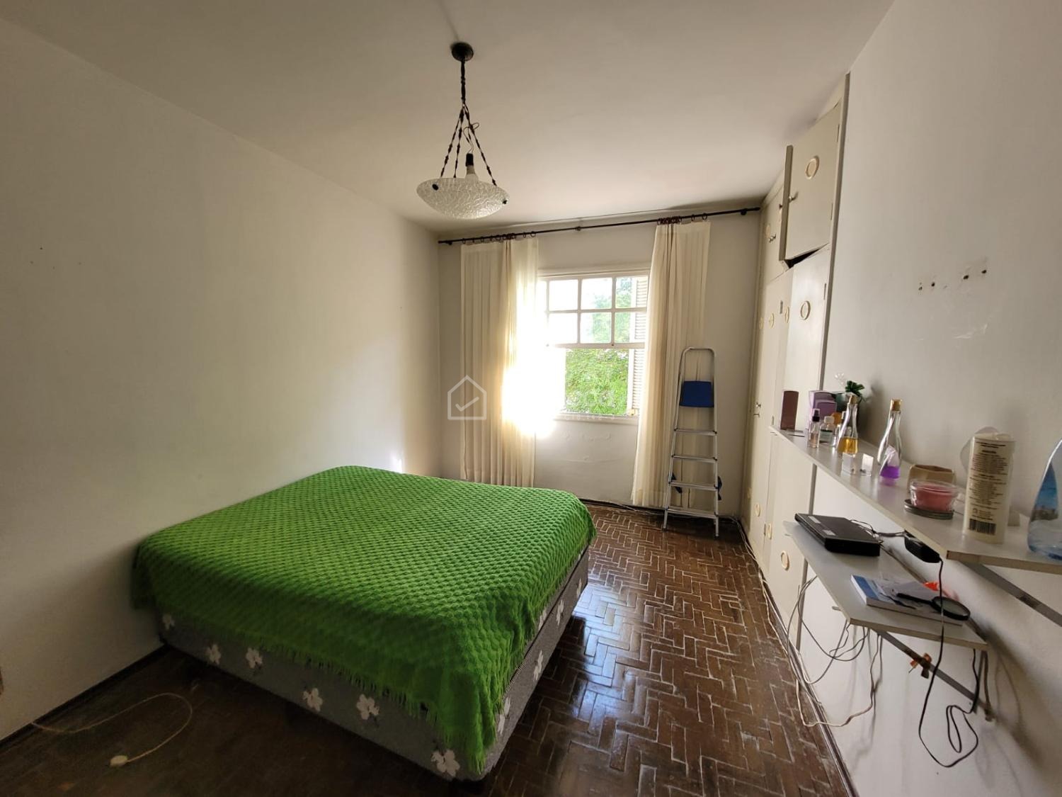 A casa possui 5 quartos, sendo 2 no piso inferior (atualmente usados como depósito), e 3 quartos no piso superior, todos com armários embutidos. São 2 banheiros, sala para dois ambientes com piso em tacos, copa e cozinha com armários planejados. Área de serviço com piso em cerâmica. Garagem coberta para 1 veículo e amplo quintal com grade frontal para maior segurança.
