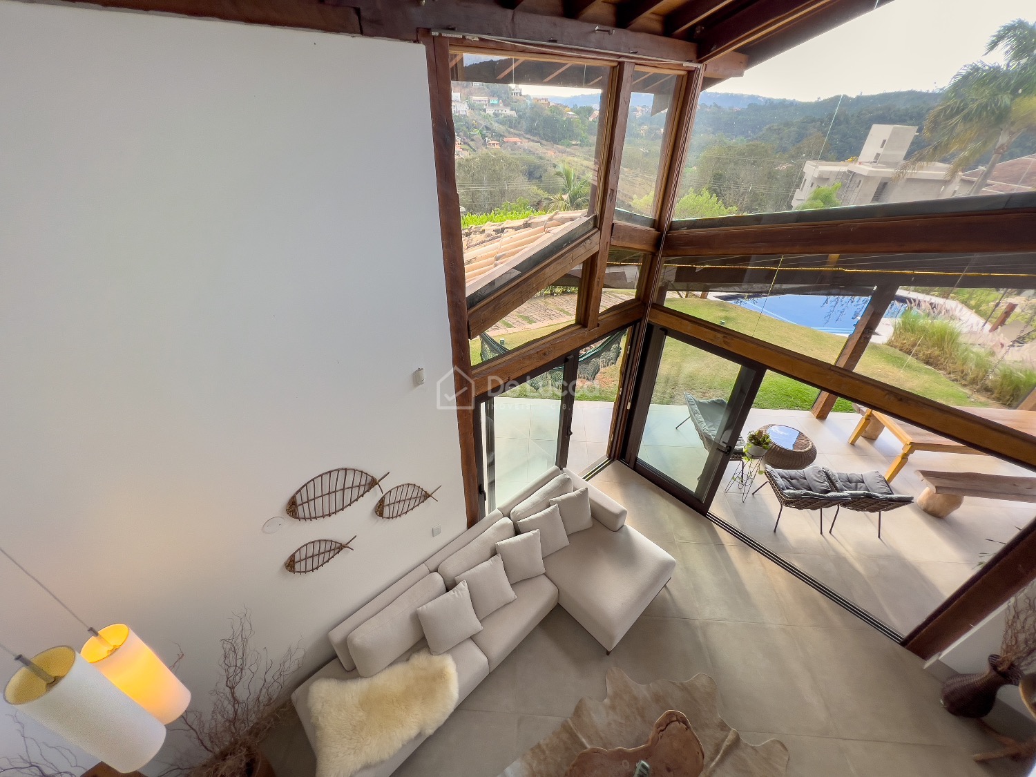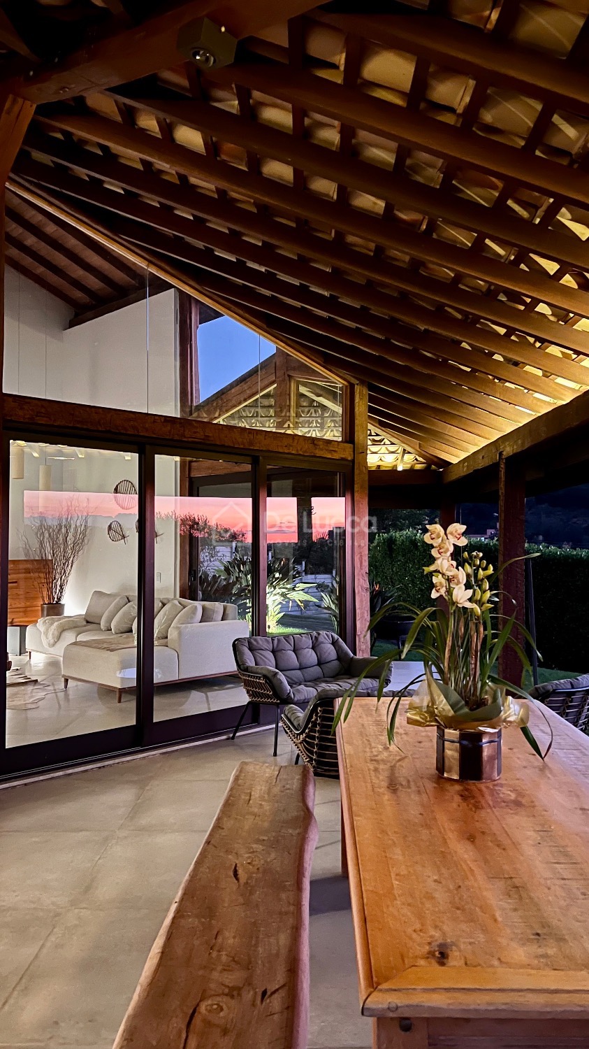 Casa mobiliada e com automação para venda ou locação em Sousas, na região de Campinas. Localizada em um dos melhores condomínios da área, a residência oferece 2.700 m² de terreno e 550 m² de área construída, proporcionando total conforto, sofisticação e uma vista maravilhosa. O imóvel conta com 4 quartos, sendo 3 suítes, e 6 vagas de garagem, além de ser completamente automatizado, com controle de voz para diversos ambientes e ar-condicionado instalado em todos os cômodos. O sistema de aquecimento solar de água com apoio elétrico garante maior eficiência energética. O living é amplo, com pé direito duplo e lareira, e integra-se a um ambiente gourmet com churrasqueira e sala de vidro, que pode ser transformada em uma academia. A cozinha é equipada com eletrodomésticos Brastemp Gourmand e rica em armários planejados, incluindo uma ilha central. A casa possui um home theater, banheiro de serviços e lavanderia também planejada. Os quartos, todos climatizados, têm varandas e a suíte principal está no térreo. No exterior, destaca-se a piscina com prainha e borda infinita, a área gourmet, um campo de vôlei e um pomar com árvores frutíferas. A segurança é garantida com sistema de monitoramento na residência e portaria 24 horas no condomínio. Localizado em Sousas, o imóvel está a poucos minutos de supermercados, escolas renomadas, restaurantes e eventos culturais. Esta é uma oportunidade única de morar com conforto, privacidade e tecnologia. Agende sua visita com a De Lucca Imóveis e descubra o seu novo lar.