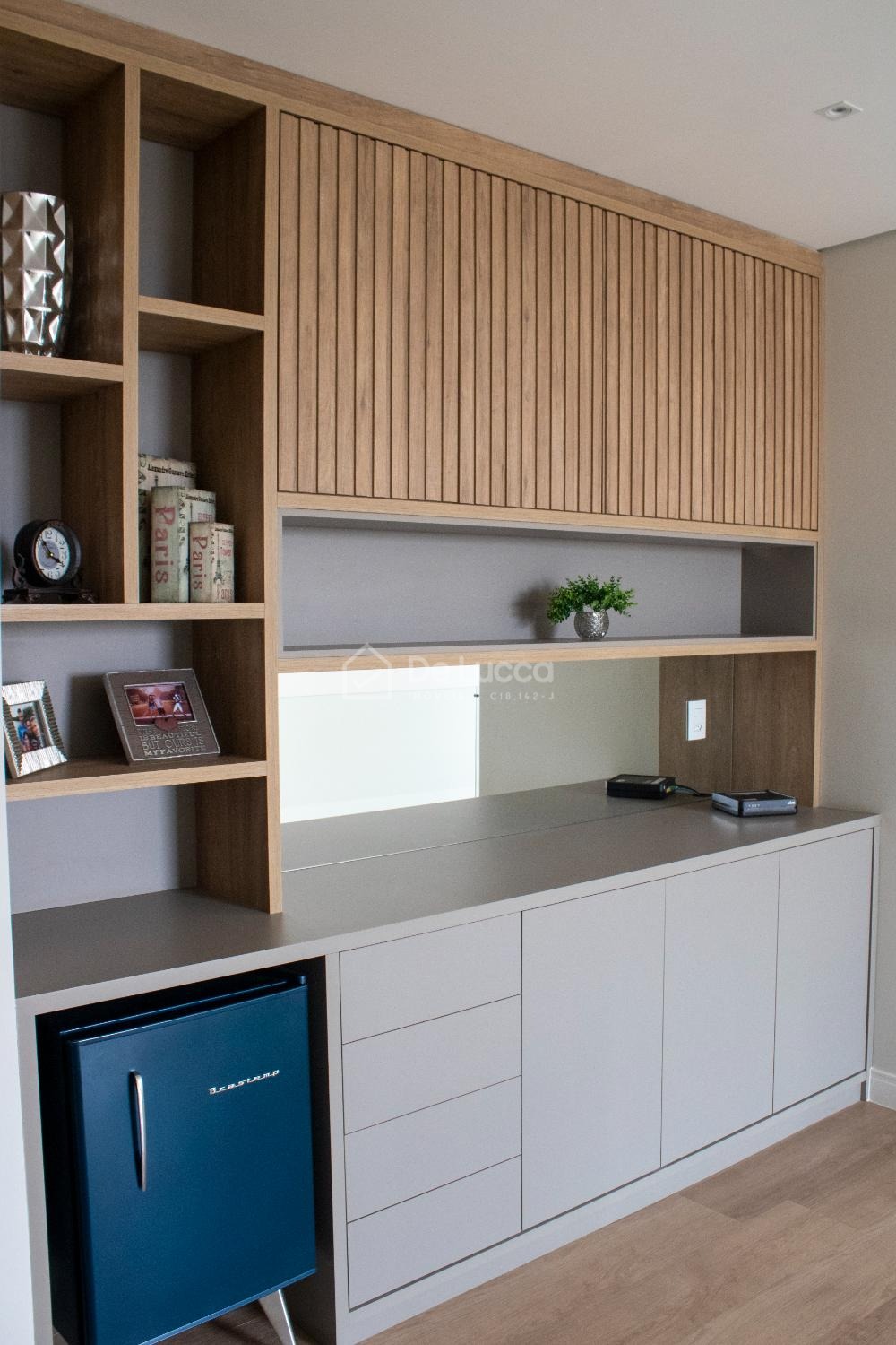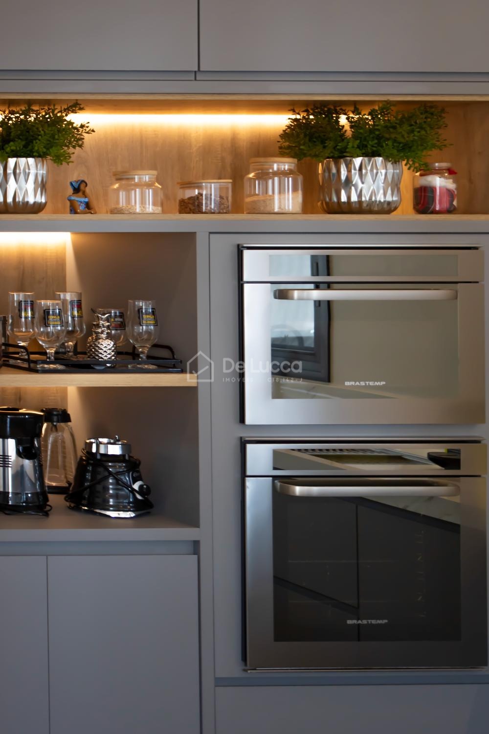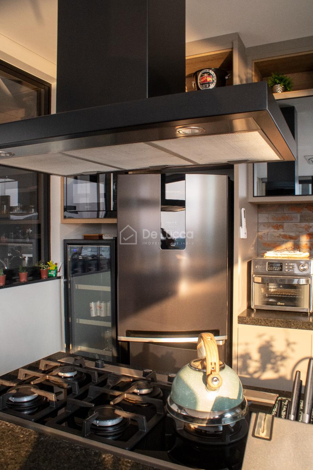 A cozinha americana planejada é um verdadeiro espetáculo, pensada para quem aprecia funcionalidade e estilo. Equipado com cooktop, exaustor silencioso, forno de última geração e micro-ondas Brastemp, esse espaço é perfeito para criar pratos gourmet ou simplesmente preparar refeições para a família. Os armários planejados e a área de serviço bem organizada garantem que a casa se mantenha sempre impecável e sem esforço.