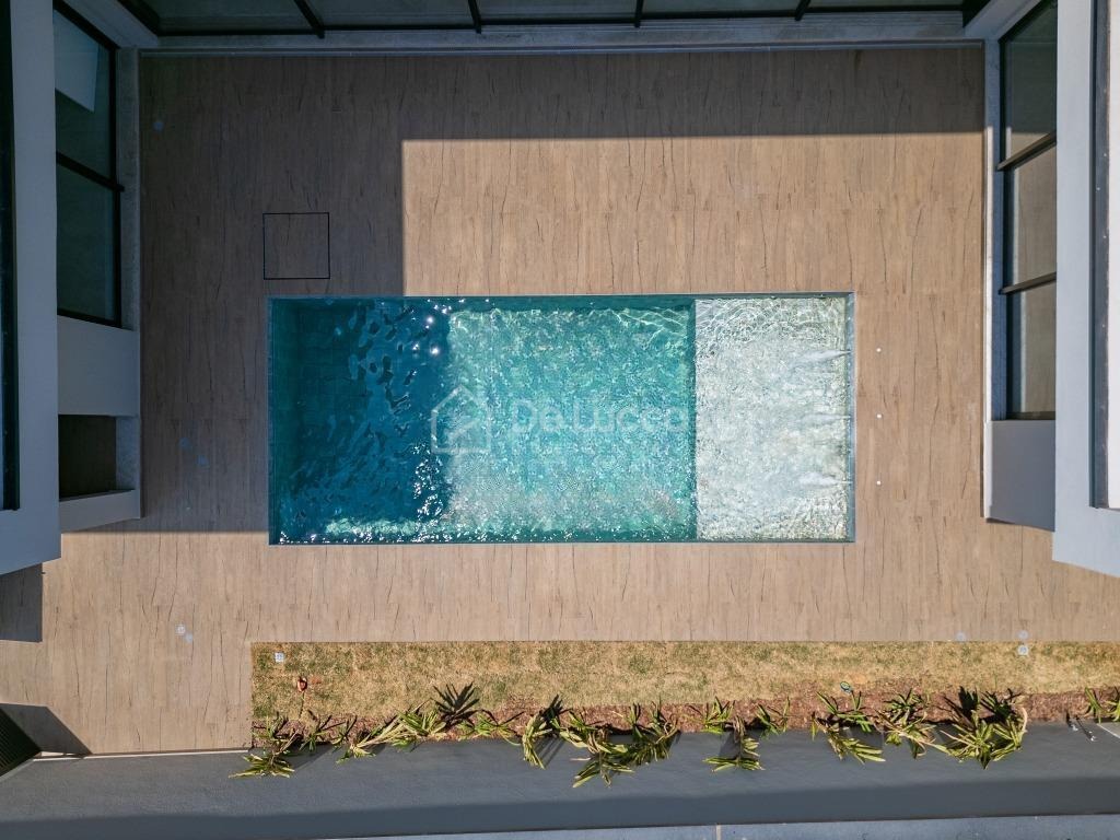 A casa possui quatro suítes amplas, todas climatizadas, proporcionando privacidade e conforto incomparáveis para toda a família. Conta ainda com um escritório ideal para home office, piscina privativa com aquecimento, academia interna, sauna completa e um elegante espaço gourmet — perfeito para momentos de lazer e confraternizações. A garagem coberta comporta até quatro veículos, oferecendo segurança e praticidade. A infraestrutura também inclui dependência para empregados, despensa e lavanderia.