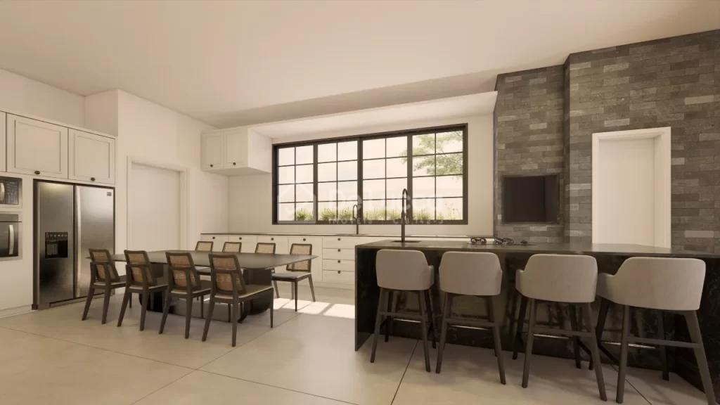 Os acabamentos são de alto padrão, com bancadas em Quartzo Stone, piscina em alvenaria revestida com pastilhas e marcenaria planejada no espaço gourmet, lavanderia, 3 suítes e 4 banheiros. A infraestrutura já conta com preparo para ar-condicionado em todos os ambientes, aquecimento solar instalado com boiler de 500 litros e 4 placas solares de 1,5m², além de telhado termoacústico em aço galvanizado e caixa d’água de 1.000 litros. O espaço gourmet é totalmente equipado, com cooktop, micro-ondas e forno elétrico.