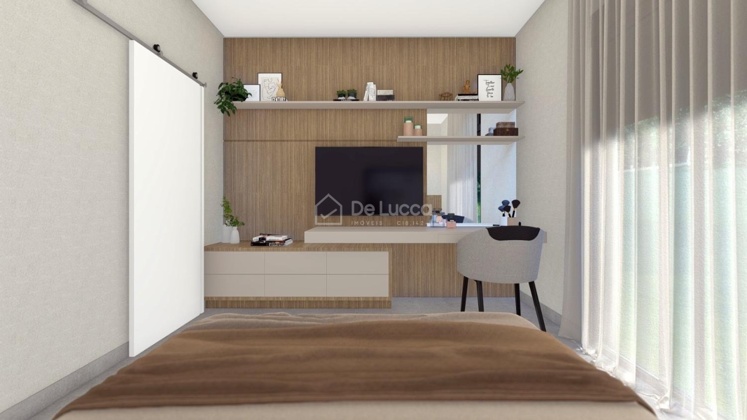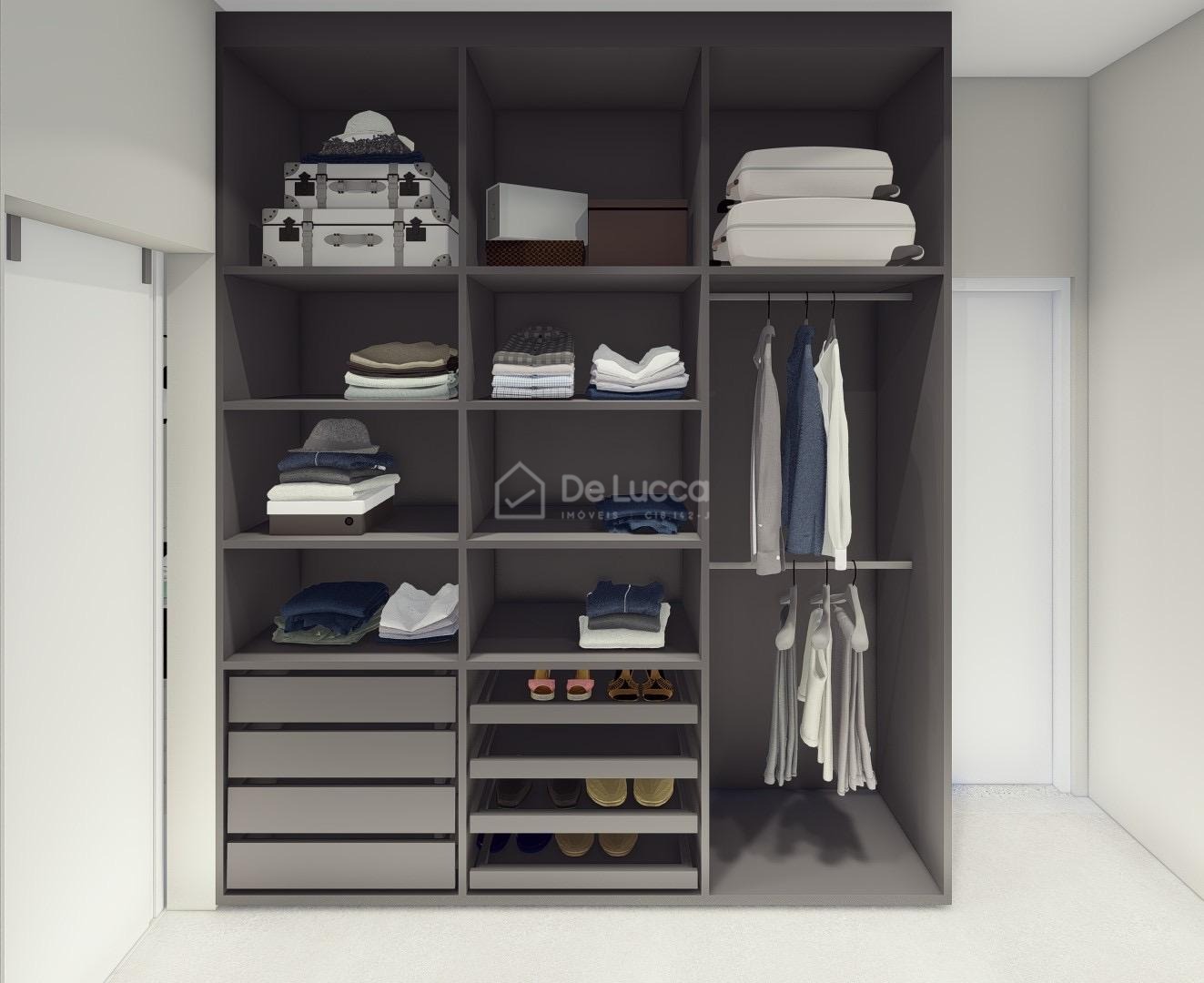 A área íntima conta com suítes espaçosas, pensadas para proporcionar conforto e privacidade. Cada uma delas possui closets amplos e bem planejados, além de acabamentos modernos e elegantes, que elevam a sofisticação dos ambientes e garantem praticidade no dia a dia.