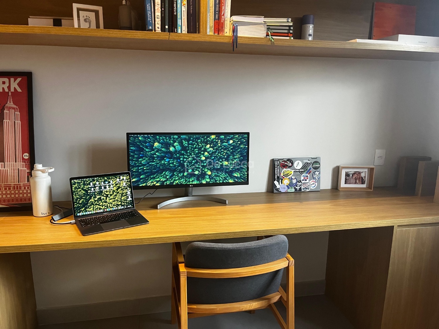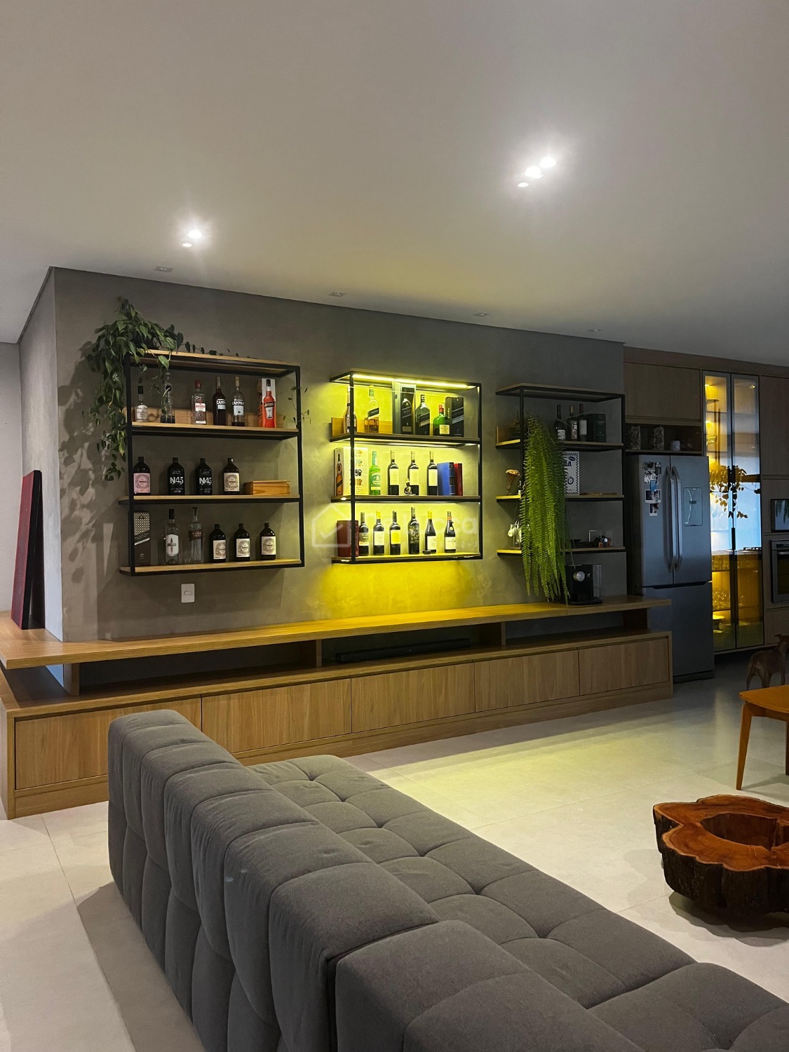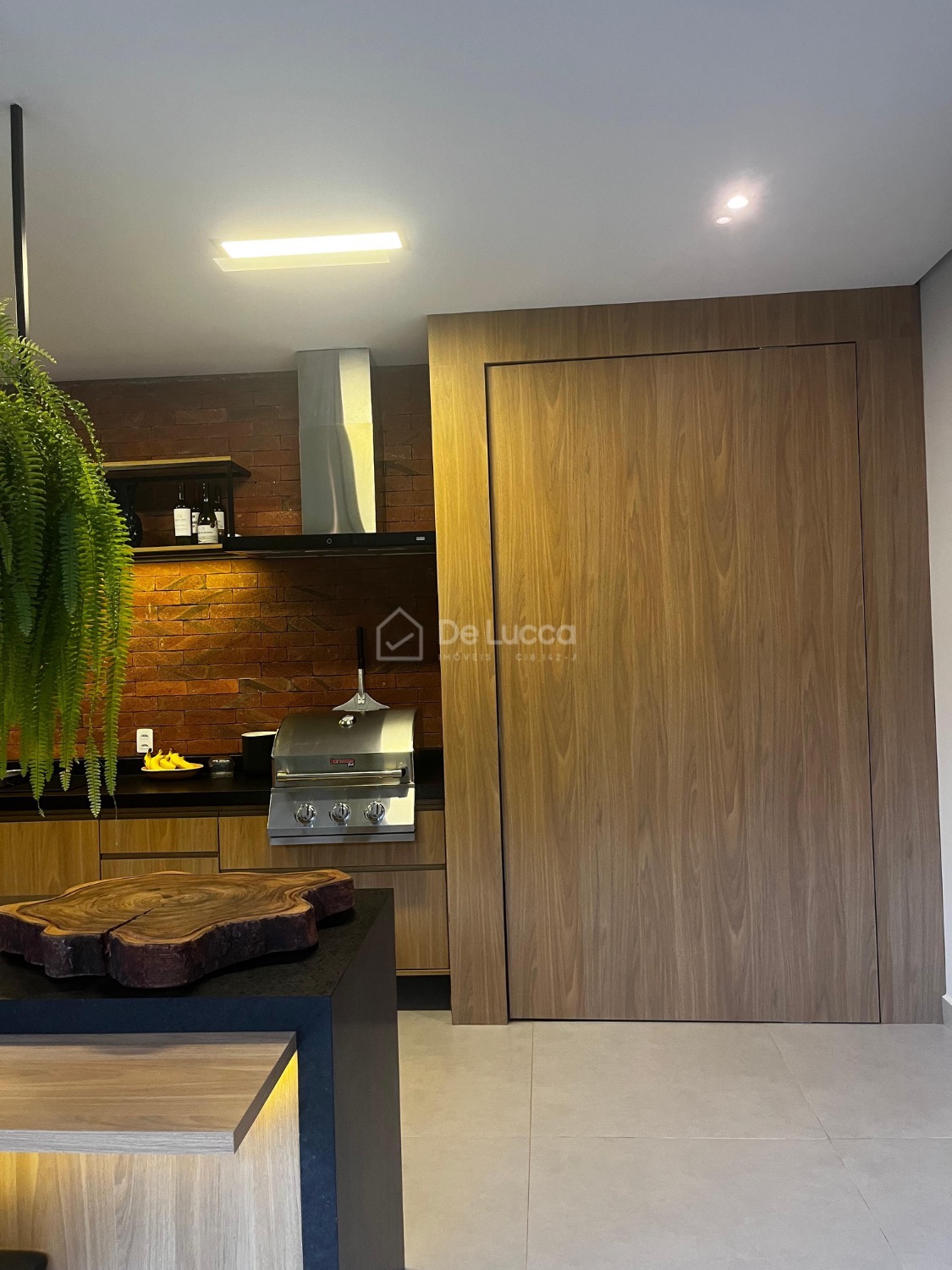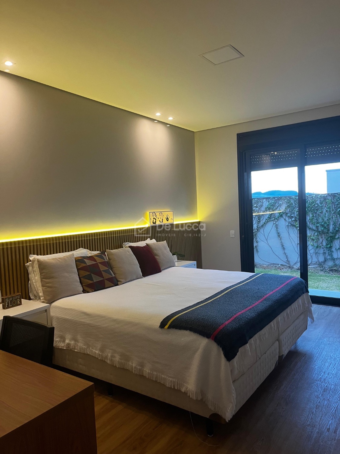 O jardim, assinado por uma bióloga, destaca-se por suas espécies cuidadosamente selecionadas, complementando a arquitetura e criando um ambiente natural e sofisticado.