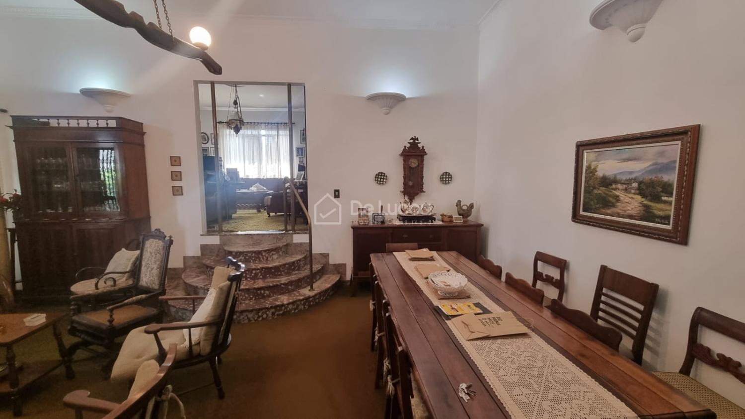 O imóvel conta com 4 quartos, sendo 2 suítes, 2 salas de estar, 2 salas de jantar e 5 banheiros, além de área de serviço com quarto e banheiro de empregada, totalmente independentes da casa principal, garantindo funcionalidade e flexibilidade de uso.