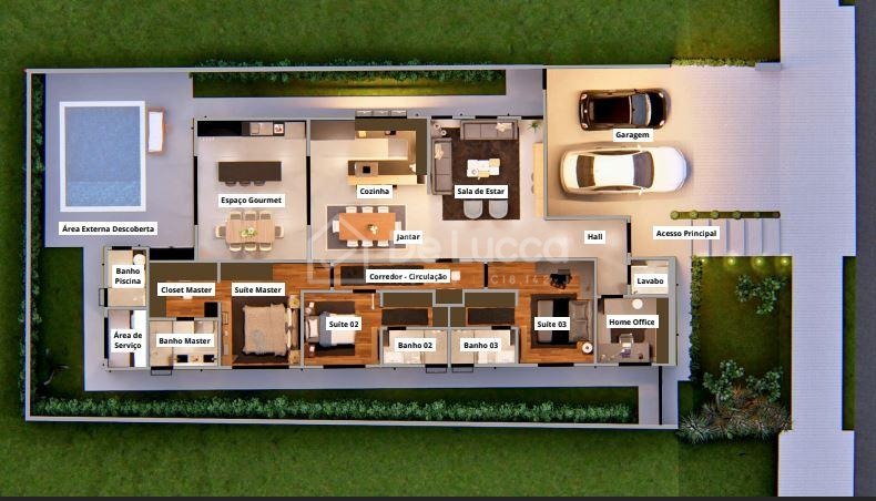 Excelente casa térrea à venda no Condomínio Residencial Arborais, em Campinas, com 223,12 m² de área construída em terreno de 429,75 m². Imóvel completo, moderno e com excelente padrão de acabamento. São 3 suítes amplas, todas com closet e ar-condicionado, além de um escritório ideal para home office. Sala de estar com pé-direito duplo, integrada à cozinha planejada e à área gourmet com churrasqueira coberta e fechada, perfeita para receber.