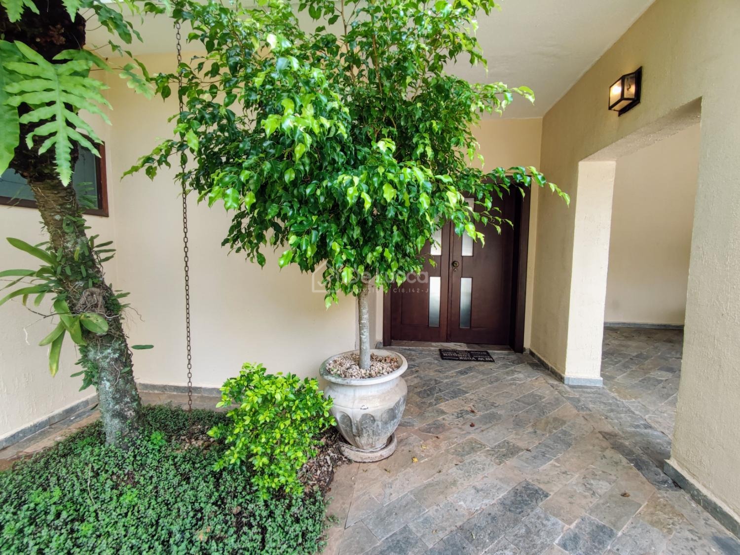 A área social oferece ampla sala de estar e jantar, lavabo e cozinha planejada, além de dependência completa de empregada e área de serviço funcional. A casa possui duas entradas laterais independentes, além da entrada principal, garantindo praticidade e privacidade.