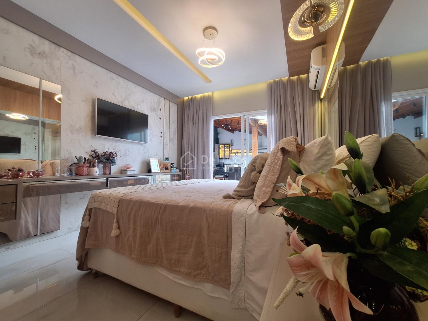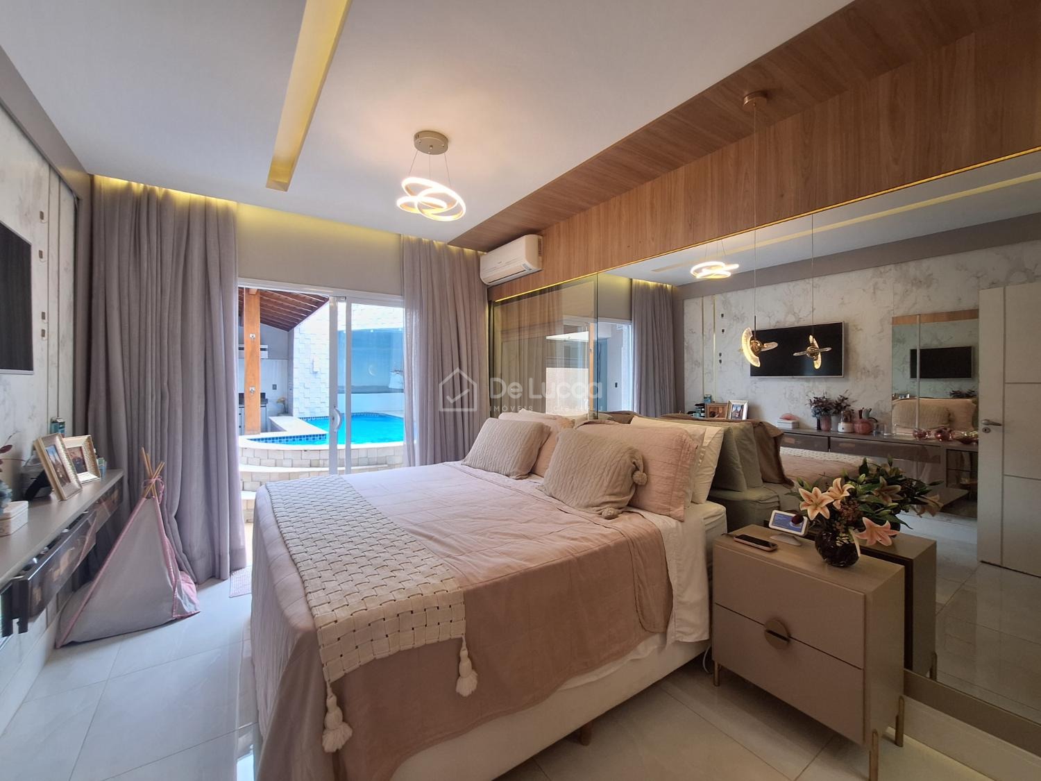 Casa térrea de alto padrão, impecável e com fino acabamento, projetada com excelente distribuição dos ambientes e alto nível de conforto. O imóvel possui 3 quartos, sendo 1 suíte máster com banheira de hidromassagem dupla e amplo closet. Todos os ambientes contam com ar-condicionado, garantindo bem-estar em todas as estações.