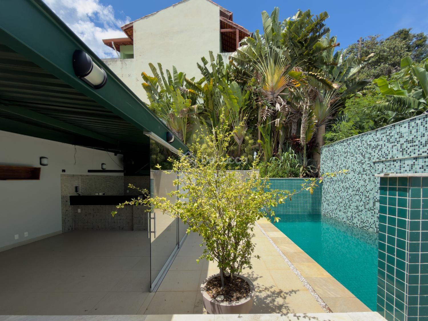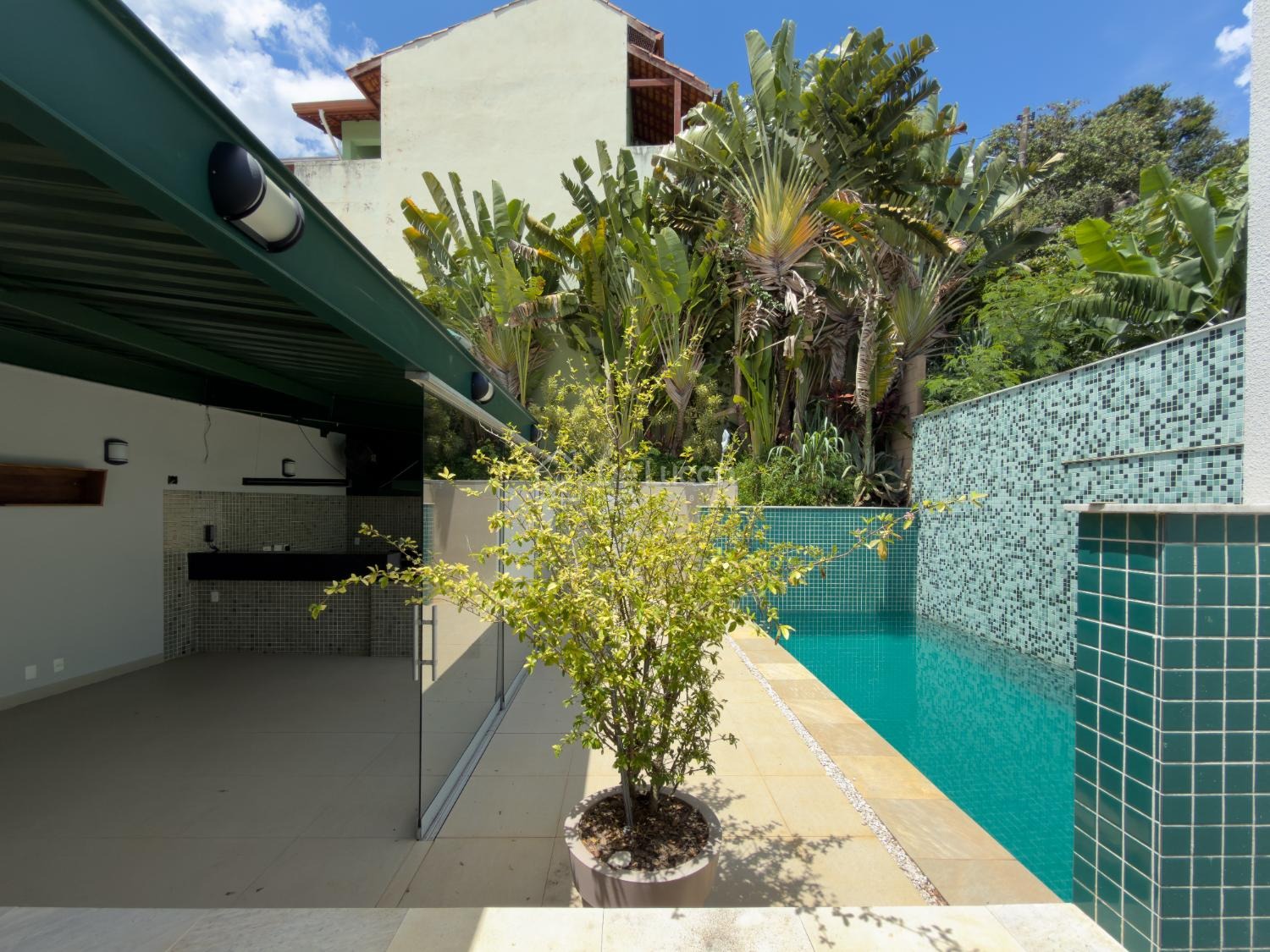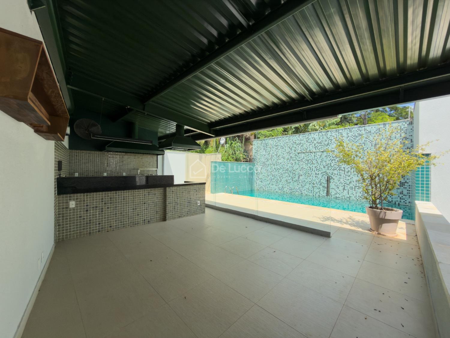 A área de lazer conta com piscina aquecida por sistema solar, sauna com banheiro, ducha e espaço gourmet equipado com churrasqueira, cooktop e infraestrutura para churrasqueira a gás, além de lavabo dedicado. Os ambientes sociais e íntimos são climatizados com ar-condicionado split inverter e a residência possui aquecimento solar, esquadrias em alumínio, porcelanato nas áreas sociais e vinílico clicado na área íntima.