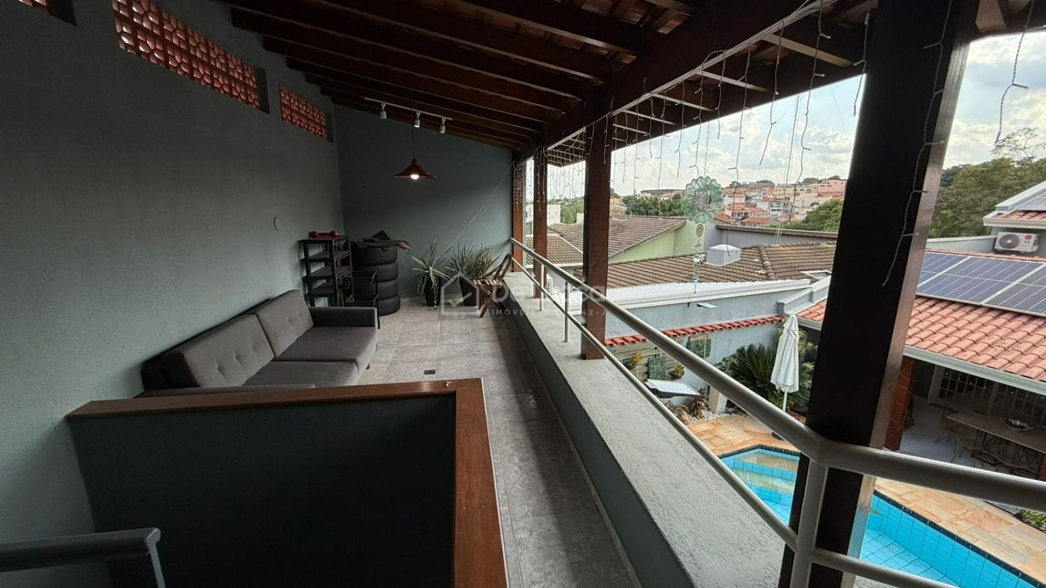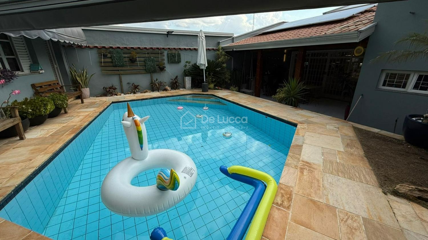 Na área externa, a casa oferece espaço gourmet com churrasqueira, piscina com aquecimento por trocador de calor, sistema de tratamento com gerador de cloro à base de sal, além de banheiro externo e quarto nos fundos com ar-condicionado, ideal para hóspedes ou apoio.