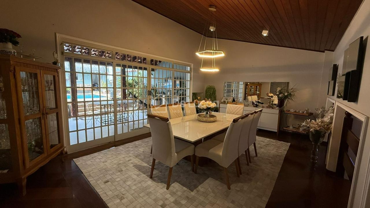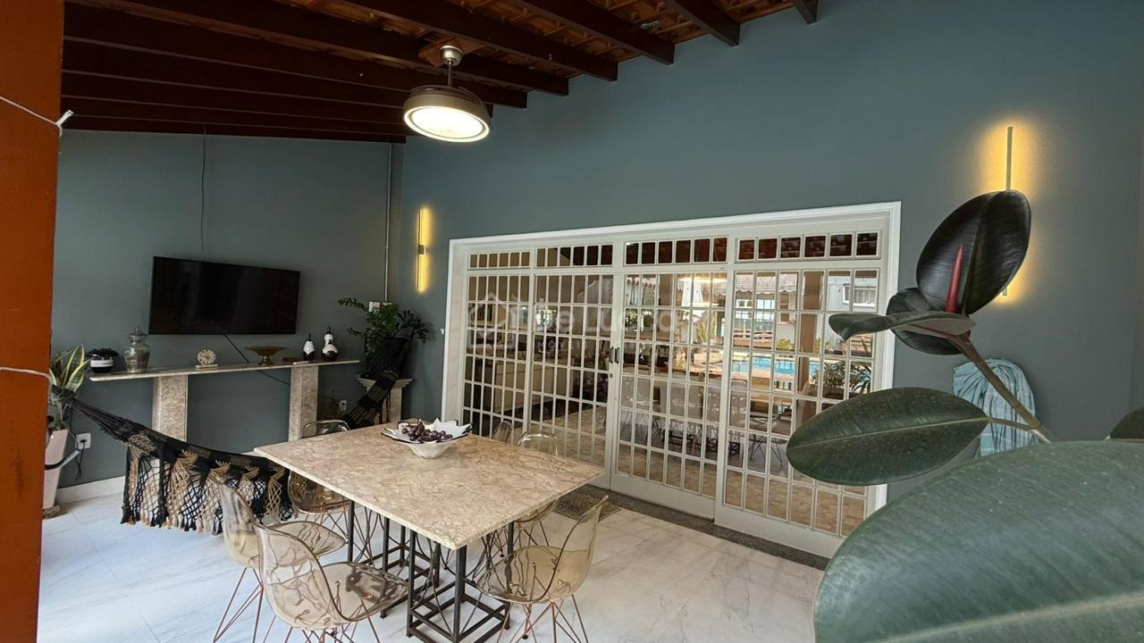 A área social é composta por sala de jantar, sala de TV com ar-condicionado, cozinha, despensa e área de serviço. O imóvel possui ainda salão de jogos com mesa de bilhar, proporcionando lazer e entretenimento para toda a família.