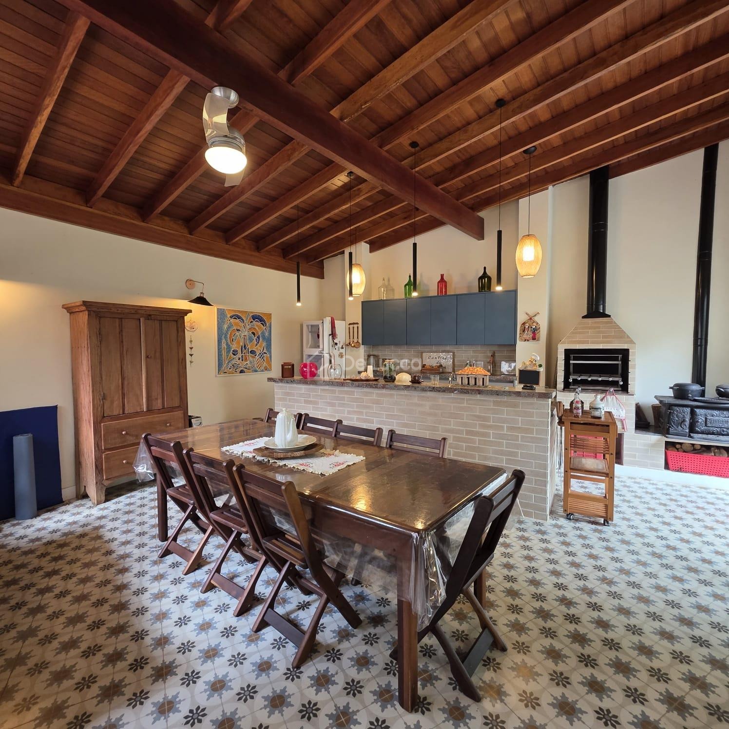No piso térreo, dispõe de sala para dois ambientes com lareira, lavabo e copa-cozinha planejada, prática e acolhedora. A área externa possui quintal, perfeito para momentos de lazer e convivência em família.