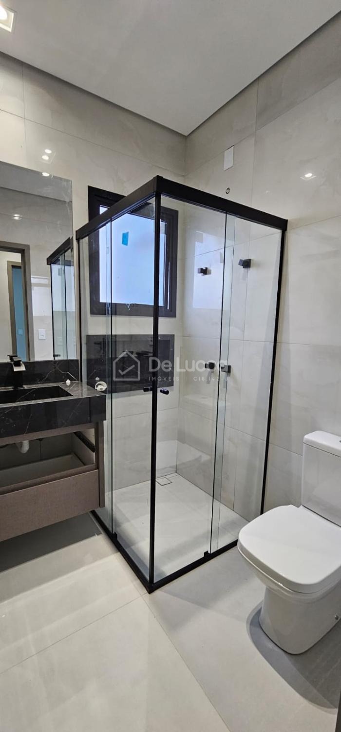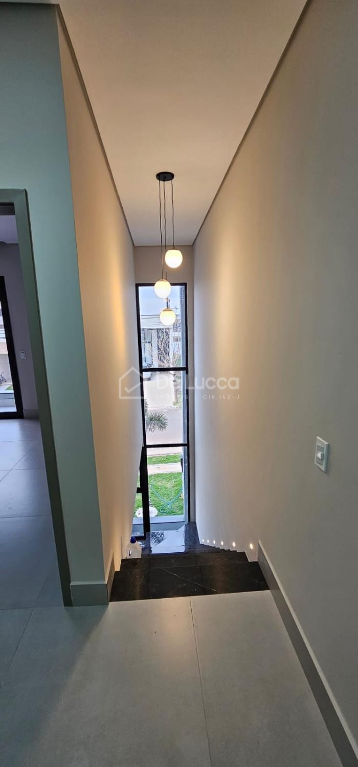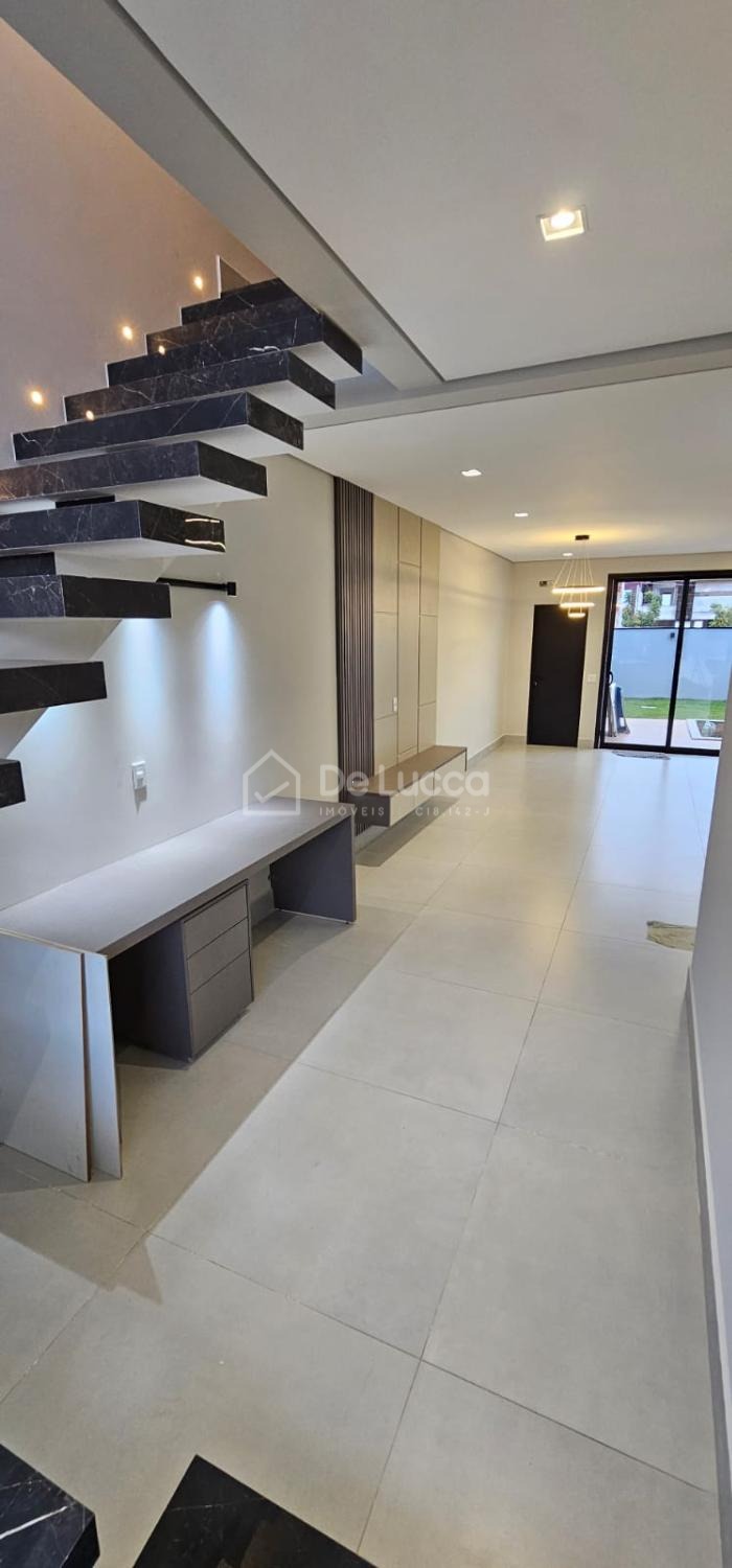 Sobrado moderno à venda em condomínio fechado e arborizado em Campinas, ideal para quem busca conforto, lazer e qualidade de vida. Com 168m² de área construída em terreno de 200m², o imóvel possui 3 suítes com sacadas e portas-balcão automatizadas com black-out, tela mosquiteiro e controle remoto, além de sala de estar e jantar integradas, cozinha com ilha central e área gourmet completa, equipada com churrasqueira, cooktop, coifa e preparação para chopeira. O quintal conta com piscina com prainha, hidromassagem, cascata e banheiro externo, perfeito para momentos de lazer. Possui escritório aberto, garagem para 4 veículos (2 cobertos), ar-condicionado nas suítes e na sala, aquecimento solar para torneiras e piscina, e infraestrutura para carro elétrico. Rico em móveis planejados e com iluminação completa, o sobrado está em localização privilegiada dentro de um condomínio plano, seguro, familiar e rodeado por muito verde. Agende sua visita com a De Lucca Imóveis e descubra um lar pensado para viver bem todos os dias.