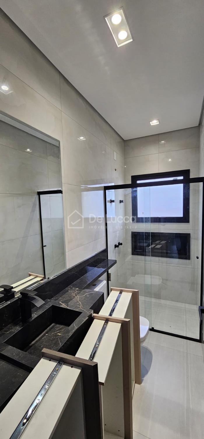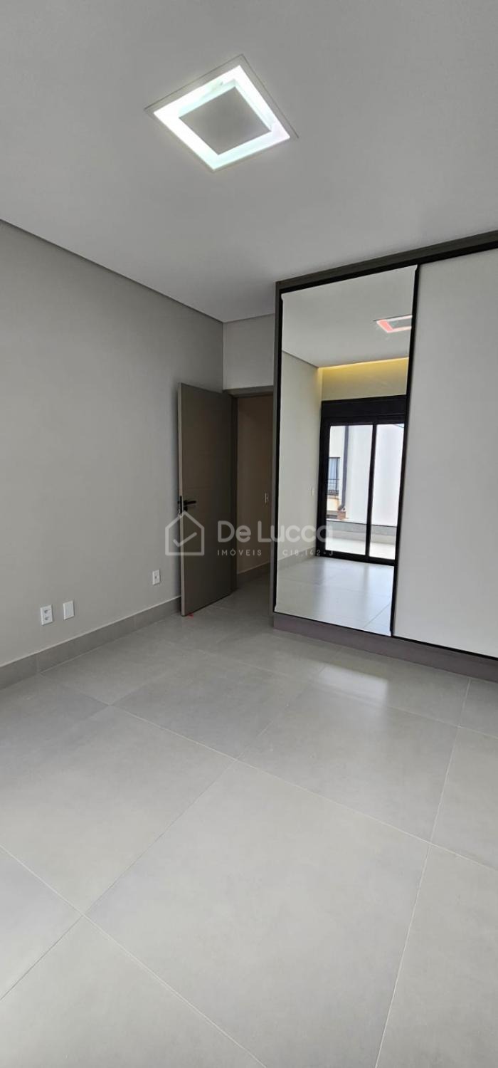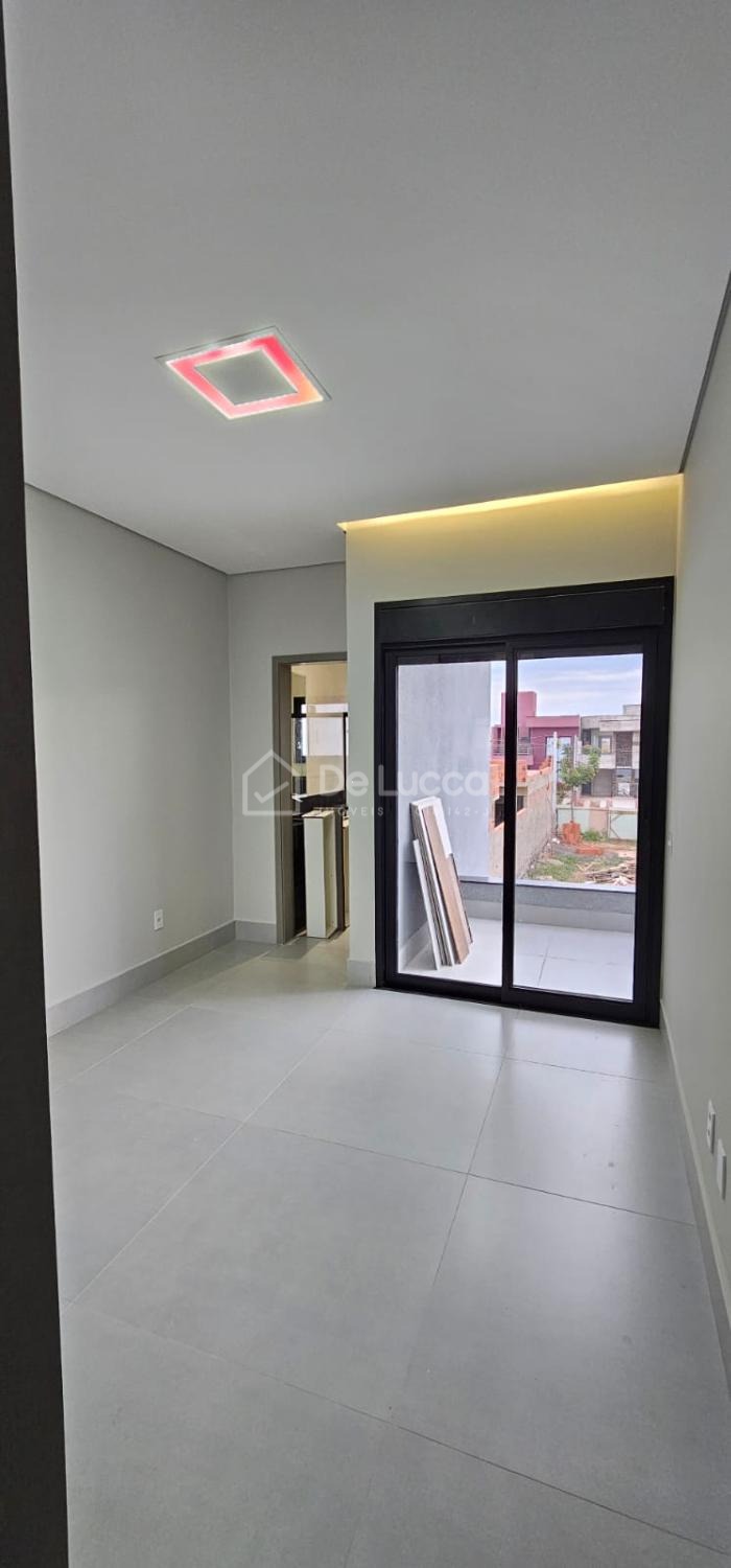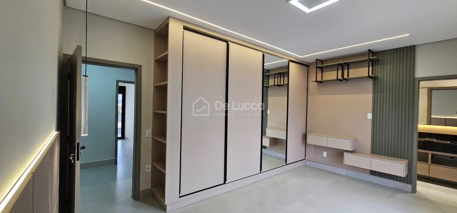 Sobrado moderno à venda em condomínio fechado e arborizado em Campinas, ideal para quem busca conforto, lazer e qualidade de vida. Com 168m² de área construída em terreno de 200m², o imóvel possui 3 suítes com sacadas e portas-balcão automatizadas com black-out, tela mosquiteiro e controle remoto, além de sala de estar e jantar integradas, cozinha com ilha central e área gourmet completa, equipada com churrasqueira, cooktop, coifa e preparação para chopeira. O quintal conta com piscina com prainha, hidromassagem, cascata e banheiro externo, perfeito para momentos de lazer. Possui escritório aberto, garagem para 4 veículos (2 cobertos), ar-condicionado nas suítes e na sala, aquecimento solar para torneiras e piscina, e infraestrutura para carro elétrico. Rico em móveis planejados e com iluminação completa, o sobrado está em localização privilegiada dentro de um condomínio plano, seguro, familiar e rodeado por muito verde. Agende sua visita com a De Lucca Imóveis e descubra um lar pensado para viver bem todos os dias.