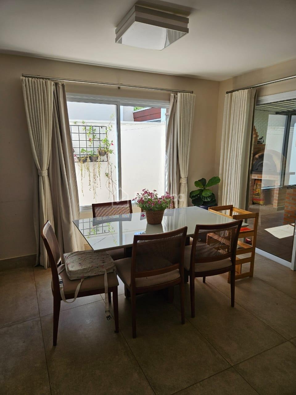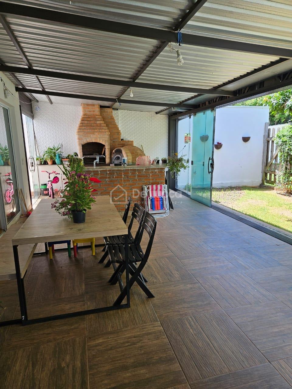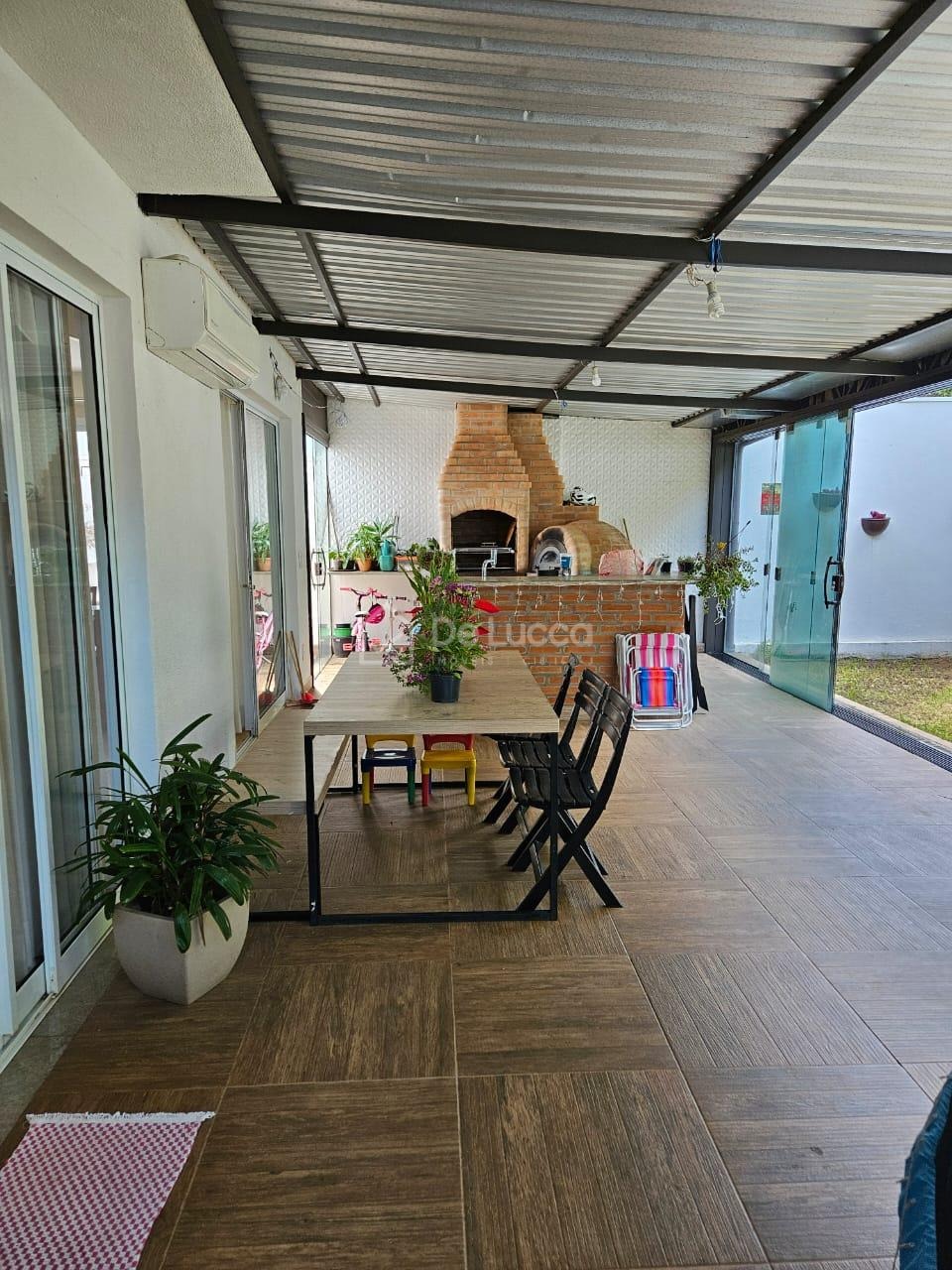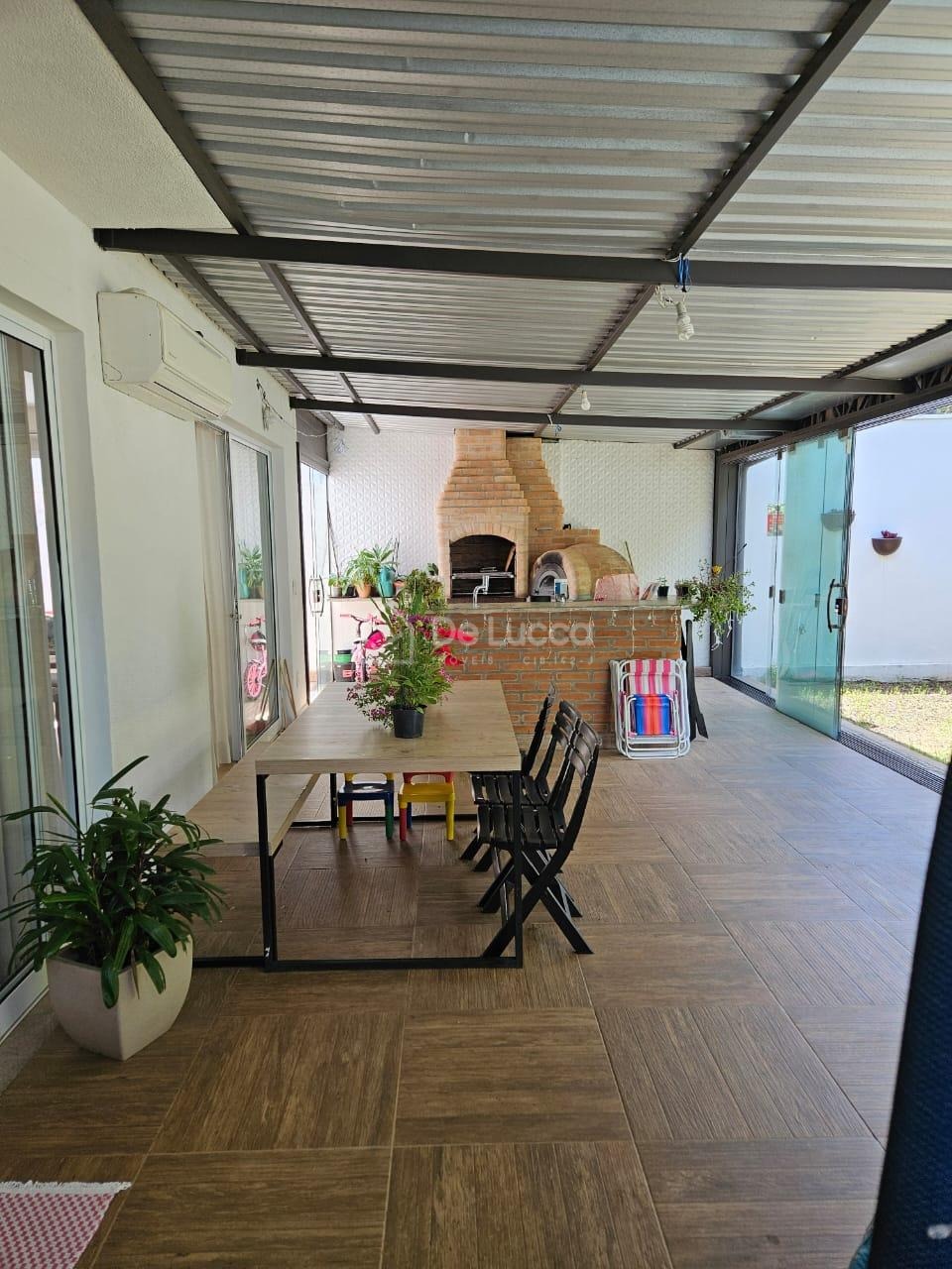 A área externa dispõe de churrasqueira, forno de pizza, ampla varanda e quintal gramado, proporcionando excelente espaço para lazer e convivência. A casa conta ainda com 4 vagas de garagem.
