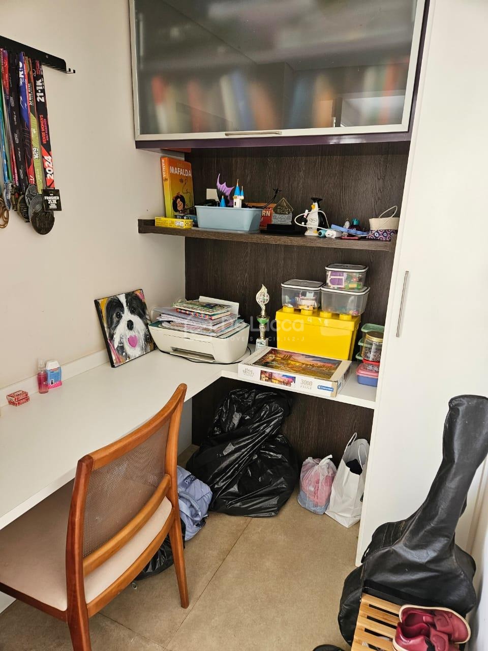 O imóvel possui sala para três ambientes, escritório, lavabo, 4 dormitórios sendo 2 suítes, banheiro social e roupeiro. A cozinha americana conta com despensa, além de lavanderia com entrada independente e corredor lateral com acesso direto ao espaço gourmet.