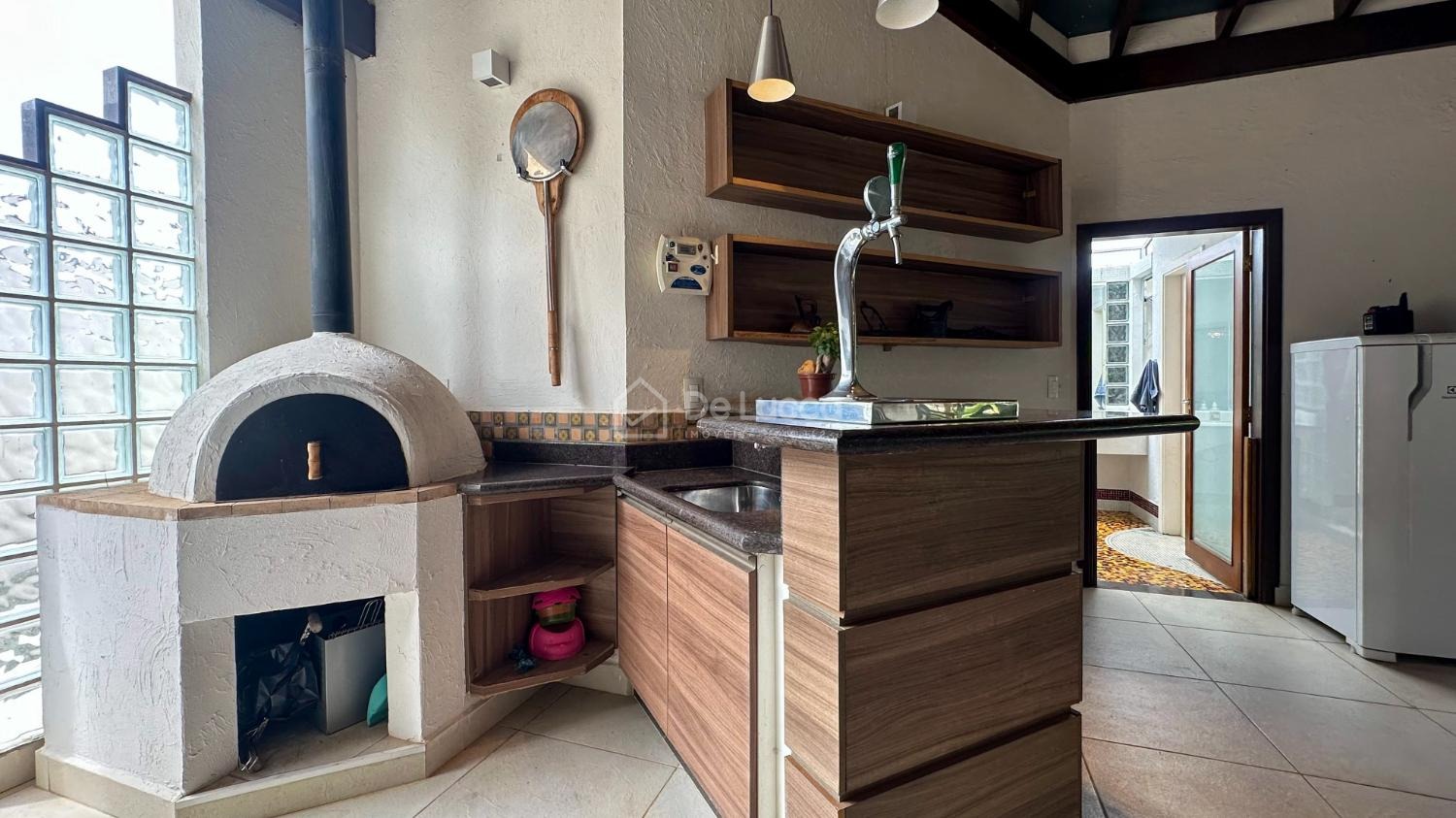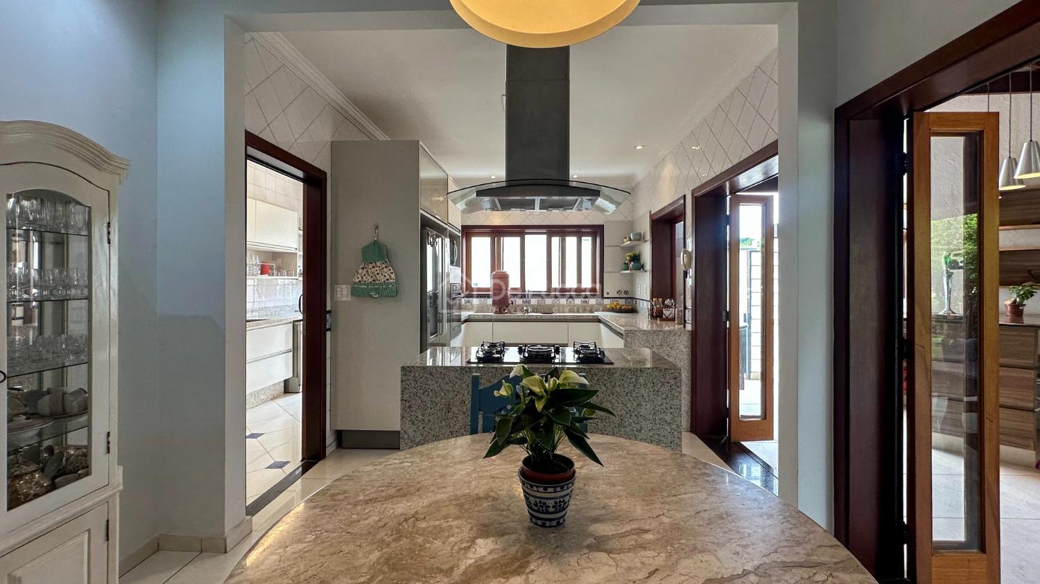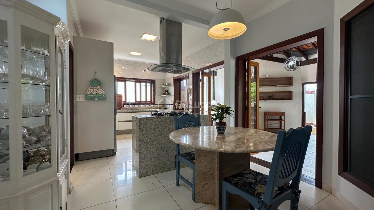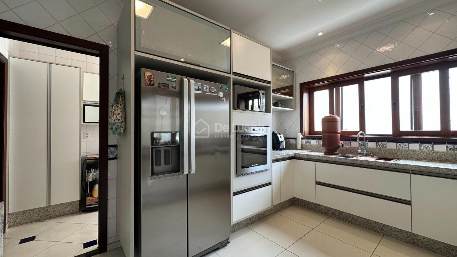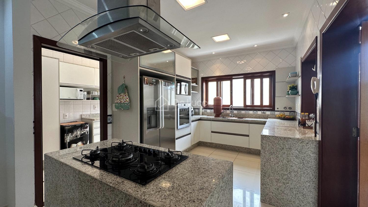 A residência conta ainda com 2 cozinhas — principal e de apoio que facilita ao receber convidados — além de área de serviço independente.