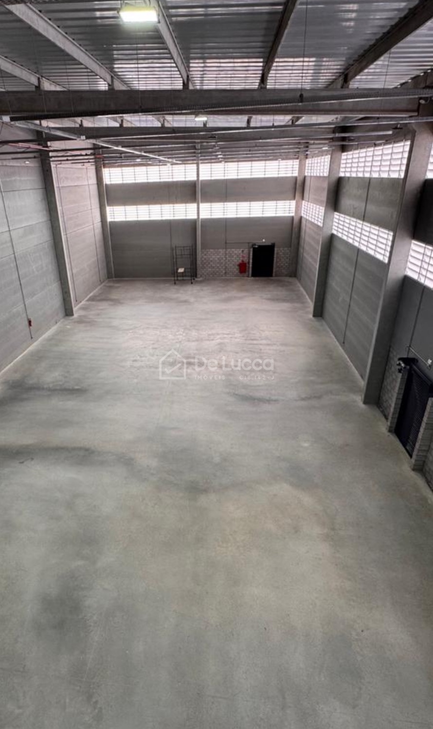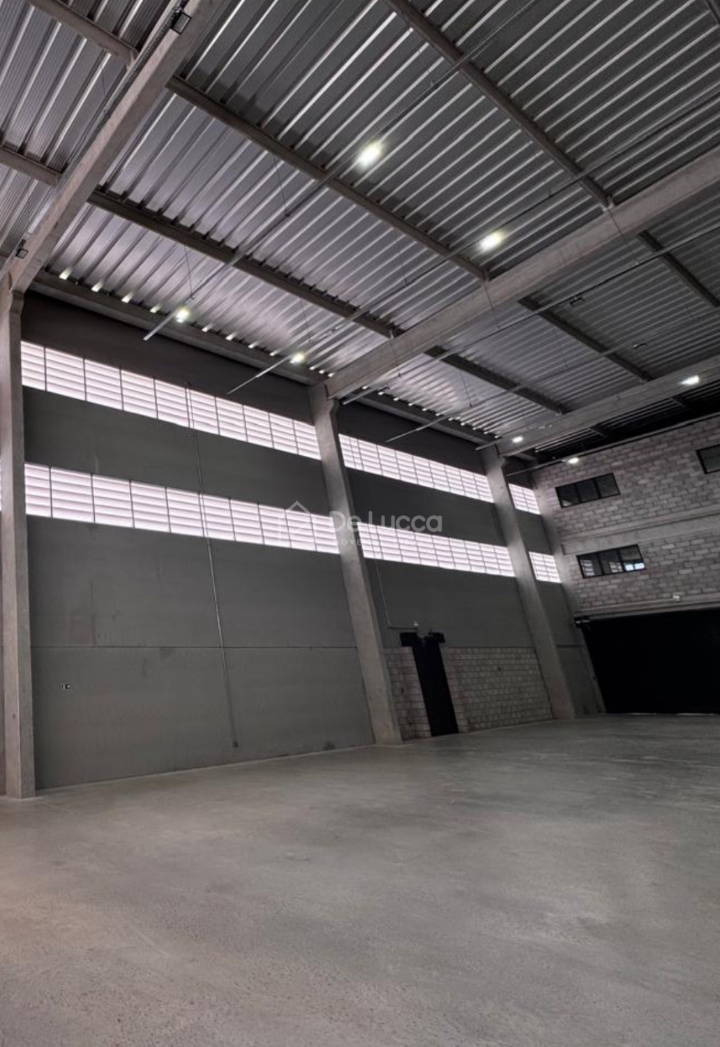O galpão possui terreno de 1.217,35 m² e área construída de 1.130,59 m², com pé-direito de 10 metros, além de área administrativa de 418,02 m² distribuída em dois andares. Conta ainda com oito banheiros, refeitório, quatro vagas de garagem e ampla área de manobra.