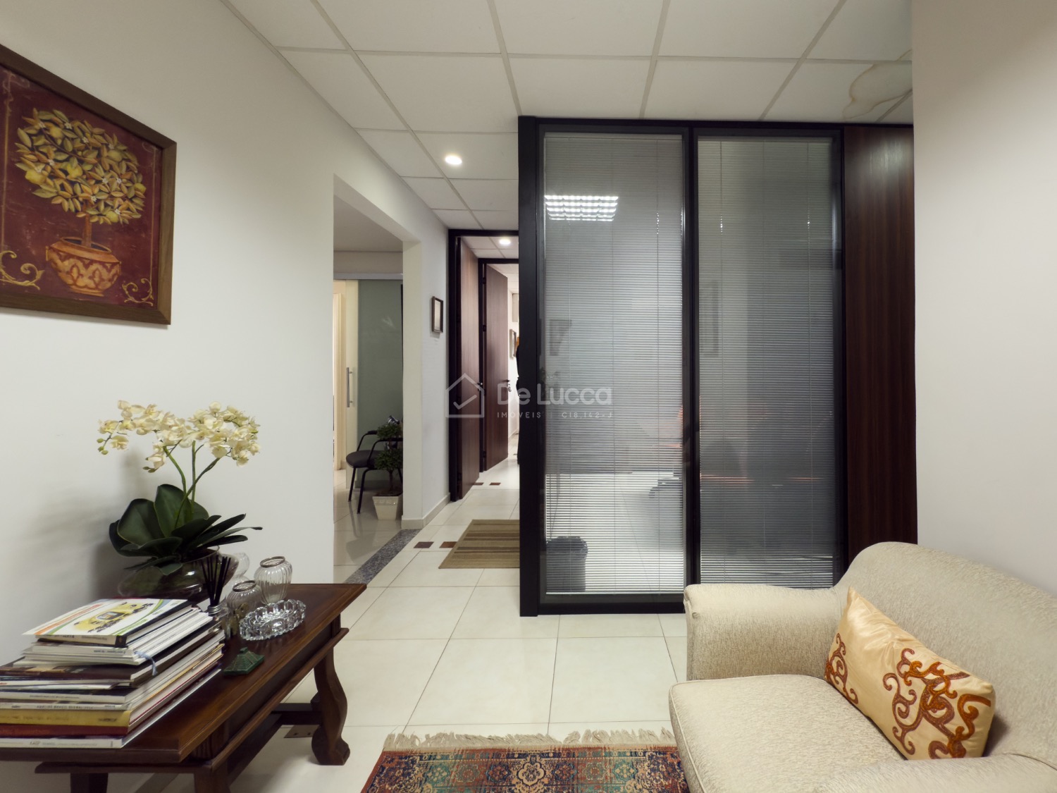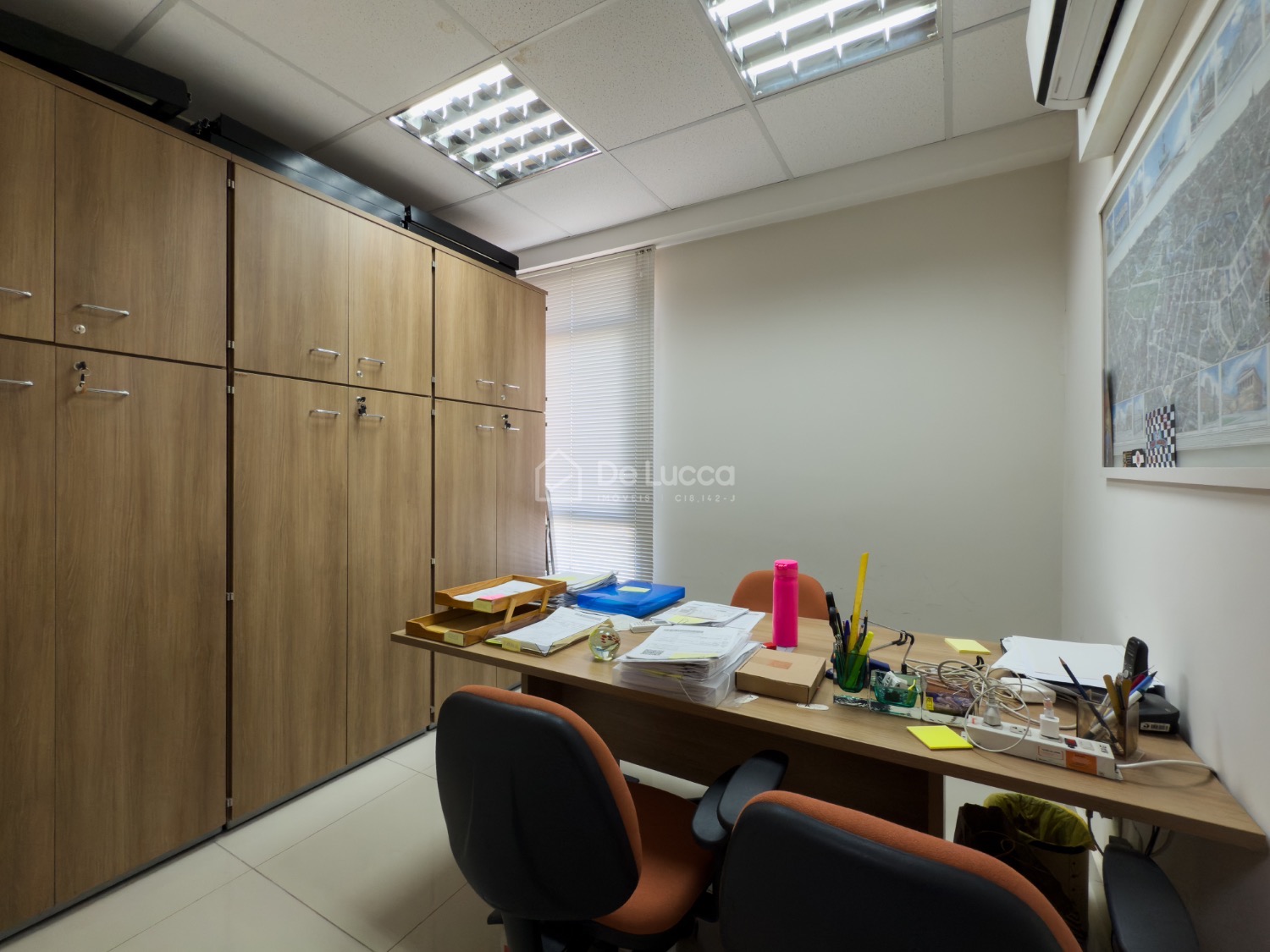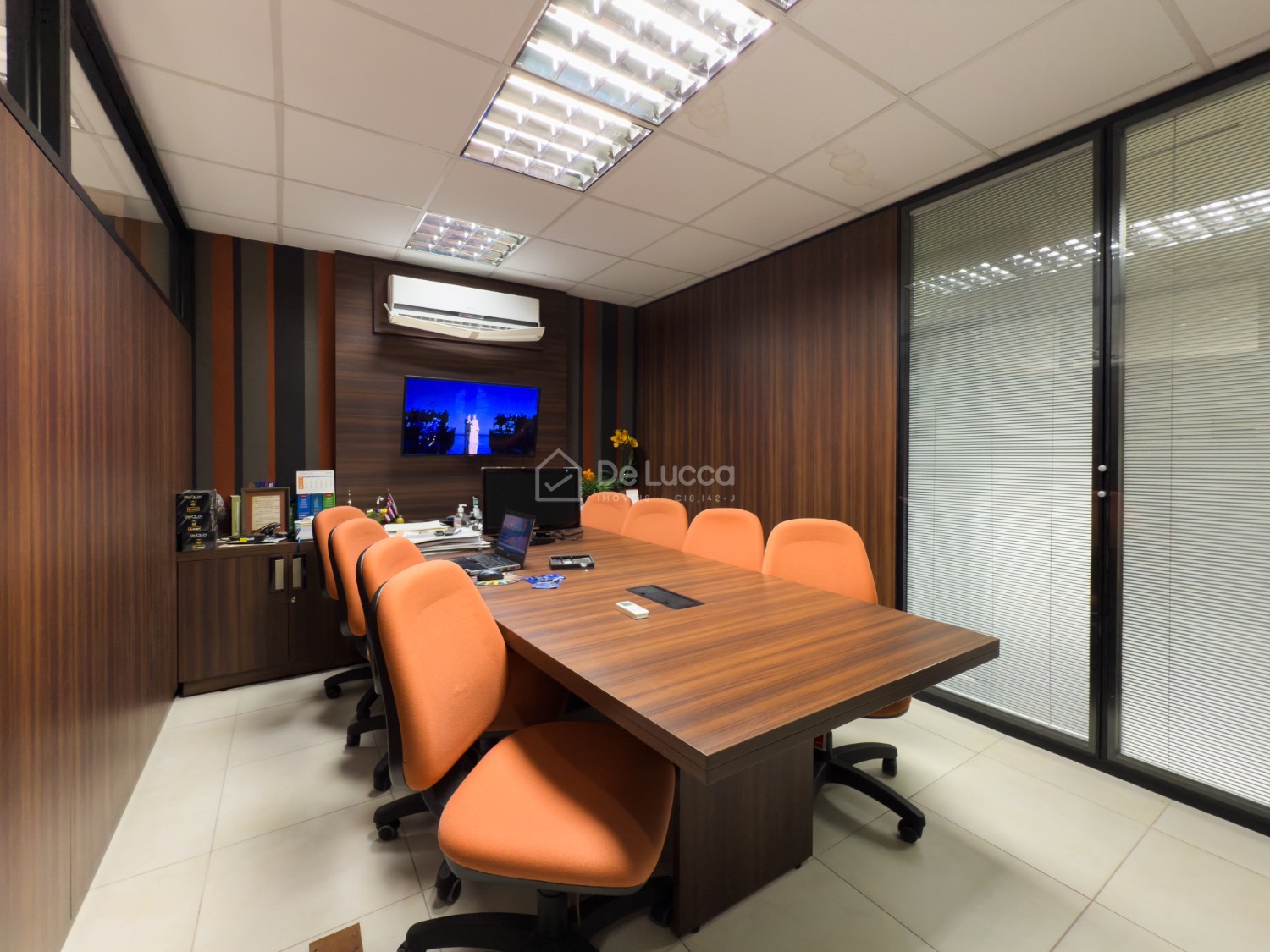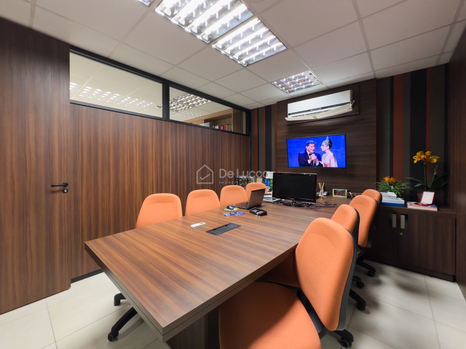 Sala comercial possui recepção, copa, banheiros masculino e feminino, sala de reuniões, sala master com banheiro privativo, e mais 3 salas.