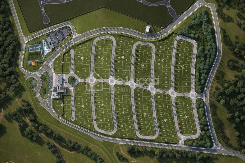 Um terreno de 267,19m², de alto padrão, declive, numa excelente localização dentro do condomínio.