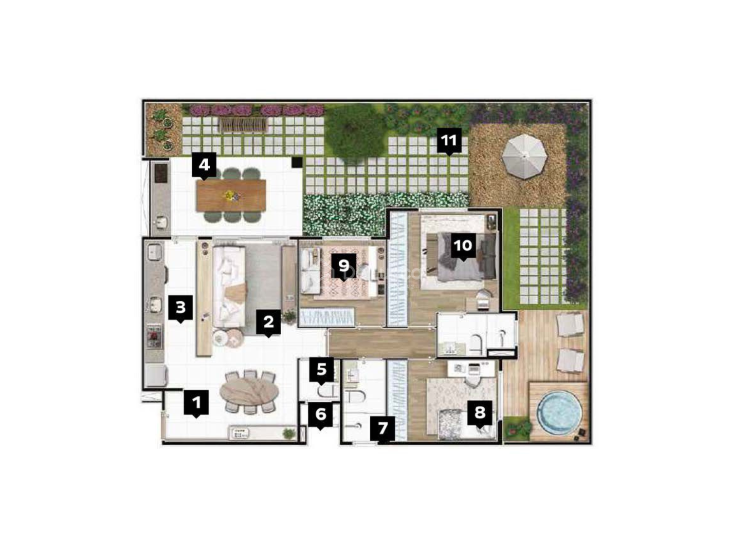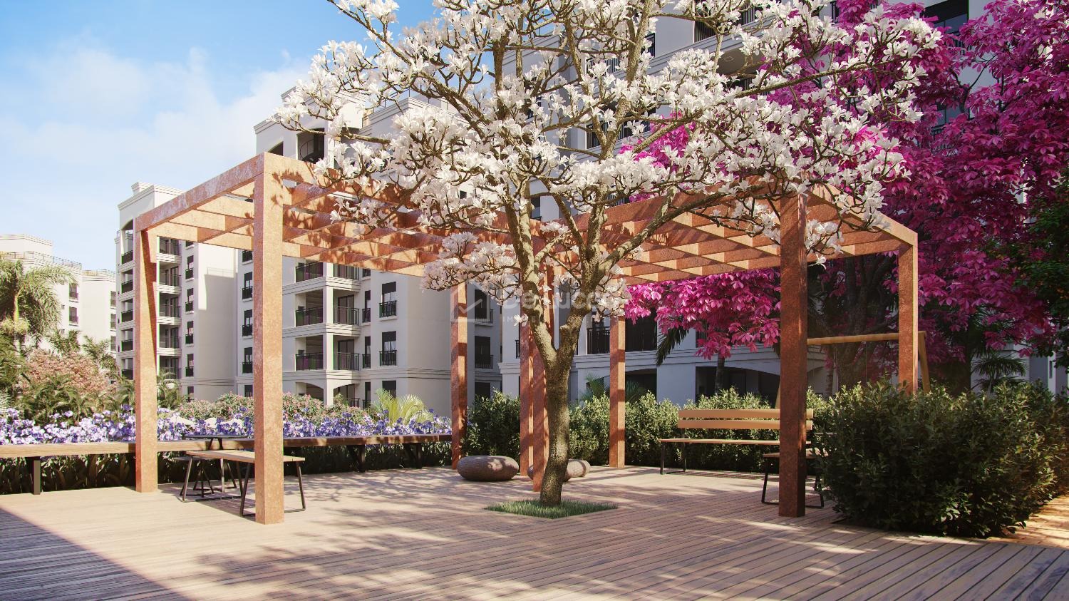 • Opções de apartamentos garden (térreos com quintal) e coberturas duplex.
