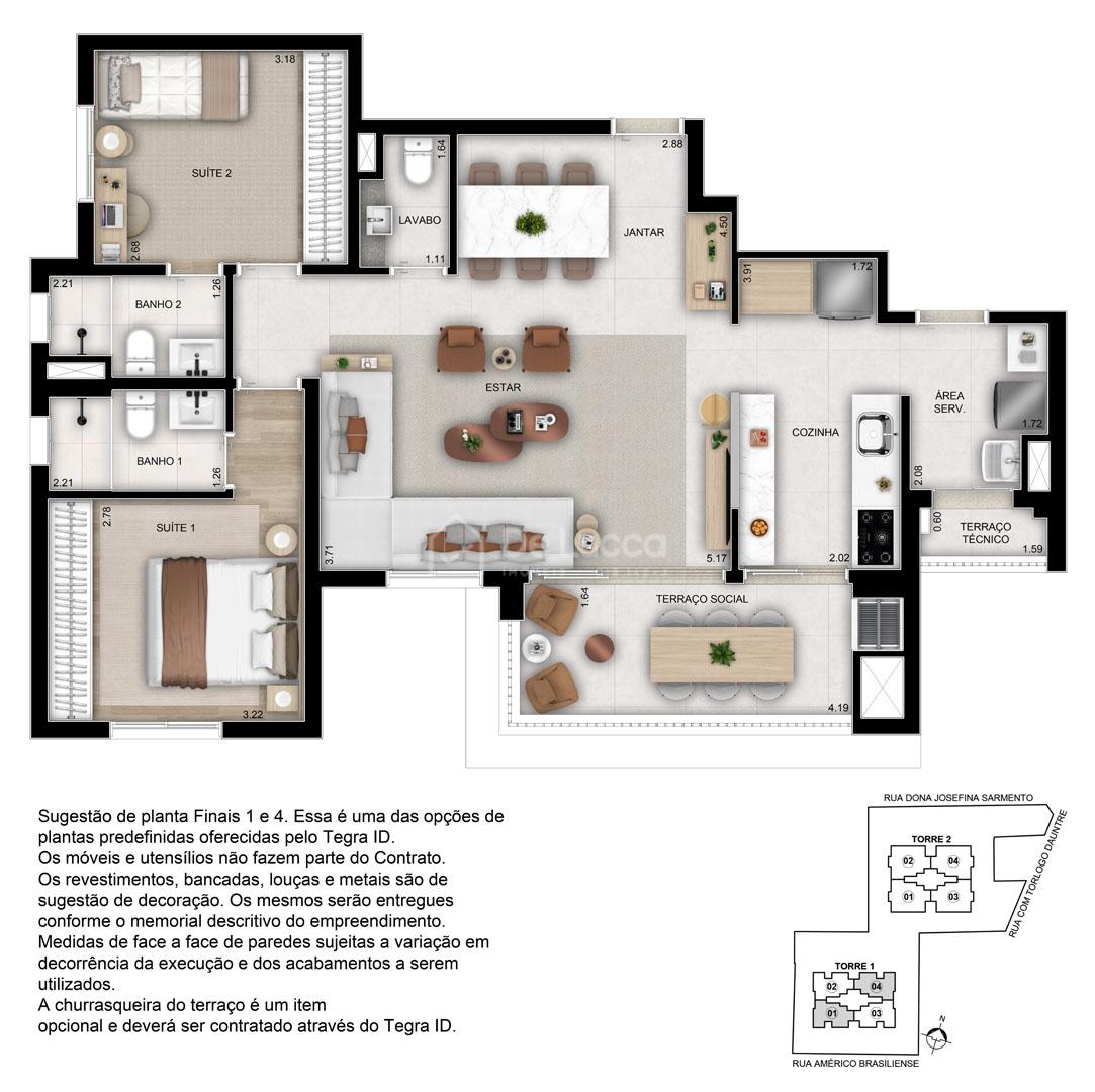 Além disso, o Tegra ID oferece vantagens adicionais, como opções de planta e acabamentos predefinidos, fechadura eletrônica na porta social, bancada com furação para cooktop, entre outros.
